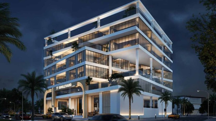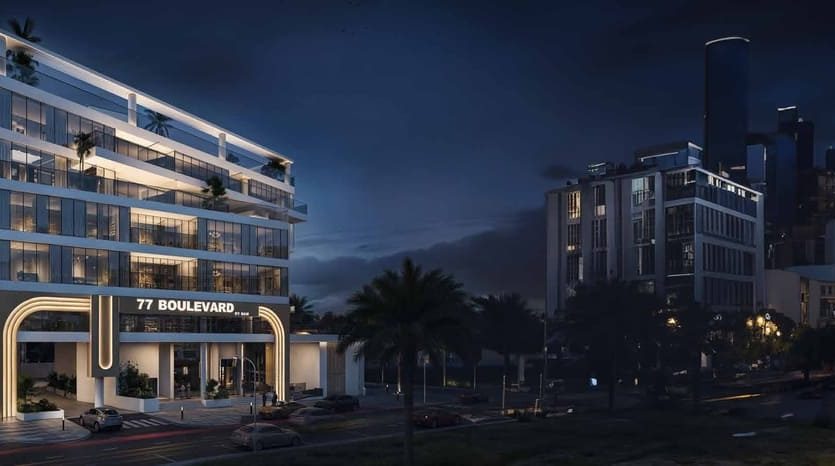 77 Boulevard’s exterior design seamlessly blends sunlight, space, and style. Natural light fills every corner, creating bright, open spaces that flow effortlessly. Even car parking areas are thoughtfully designed, balancing beauty with functionality to enhance the building’s overall aesthetic.
