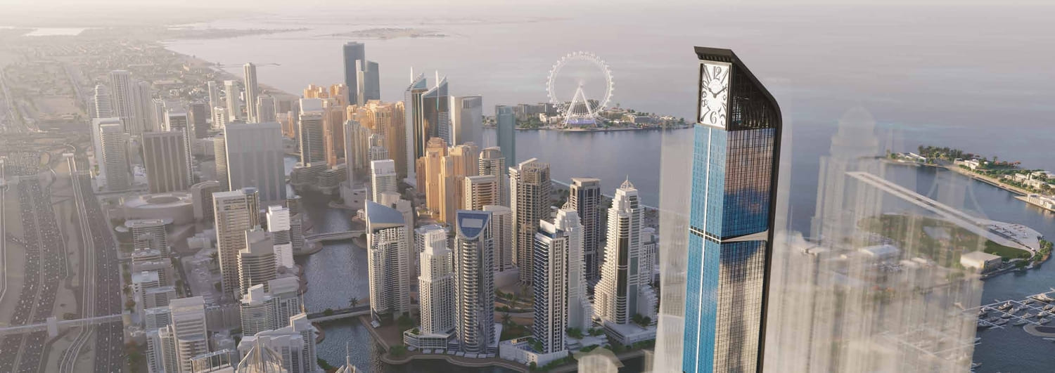 London Gate new launch Aeternitas is located at Dubai Marina, set to be the tallest residential clock tower in the world with luxury residential options as off-plan apartments. This esteemed residential development seamlessly combines sophistication, class, and lifestyle, enhancing your living experience to unparalleled heights.