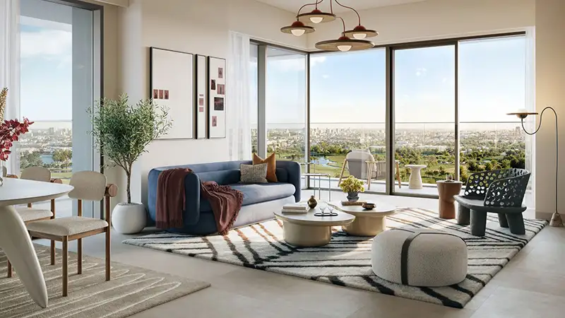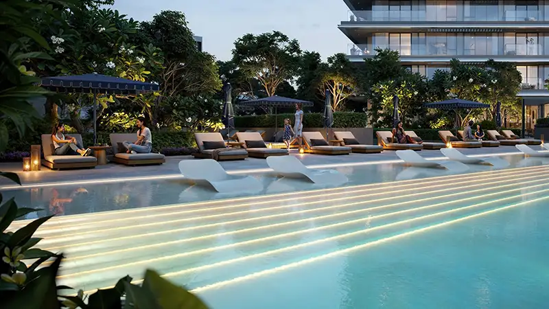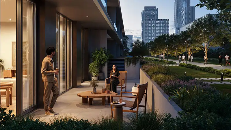 Modern architecture elevates everyday living at ease through its careful design which raises its value through contact with the environment. The building communicates everlasting aesthetic appeal through its smooth design elements which combine natural earth tones with expansive glass walls. Quiet sophistication greets you immediately when you step into high-ceilinged lobbies and the design of the building expresses the dual qualities of urban innovation with nature-infused tranquillity that define Dubai Creek Harbour. Every exterior design at the building communicates with its environmental setting with purposeful intent to enhance your spatial awareness of the local nature scene which includes green parks, canal reflections and golf course landscapes.