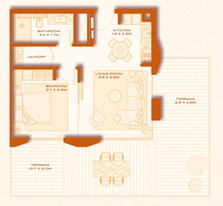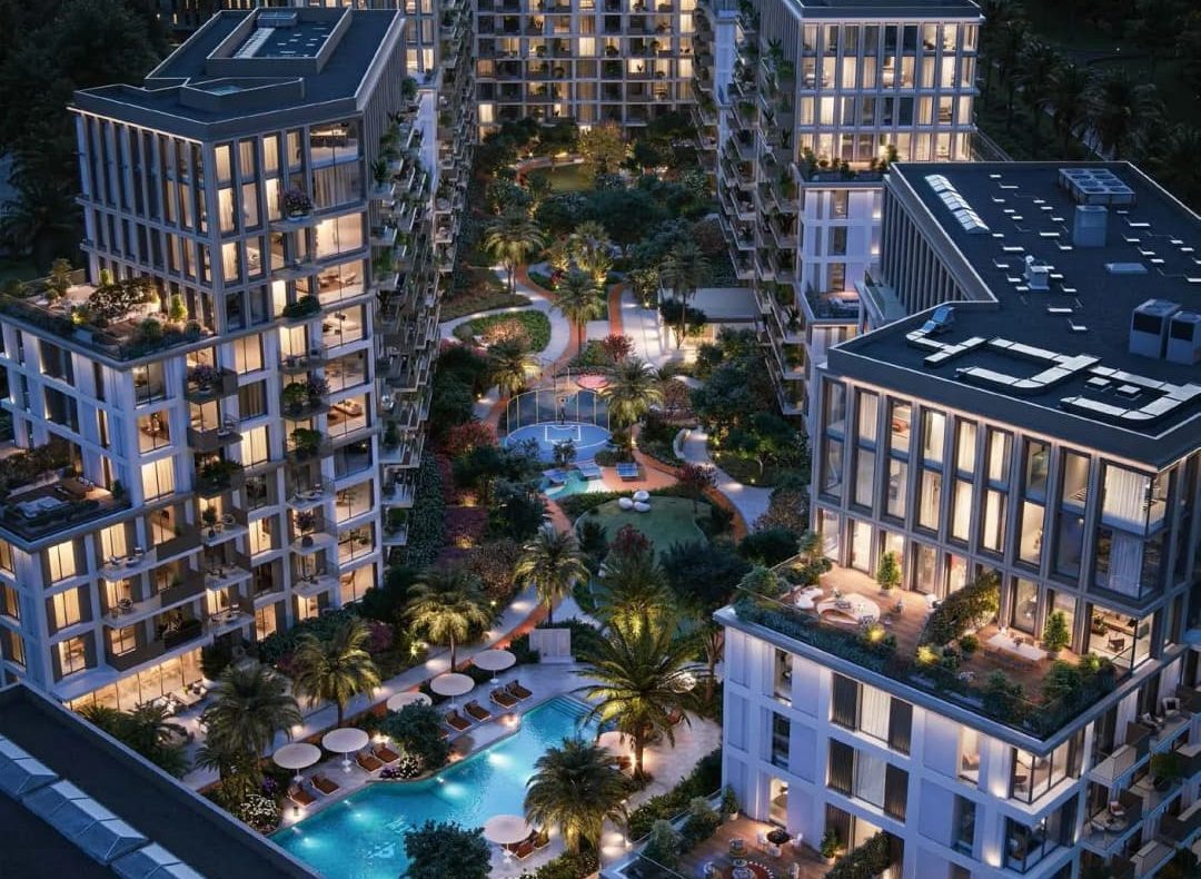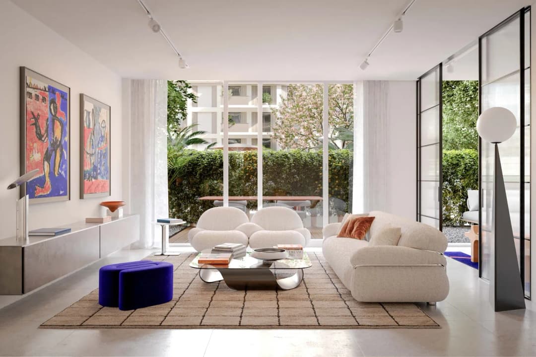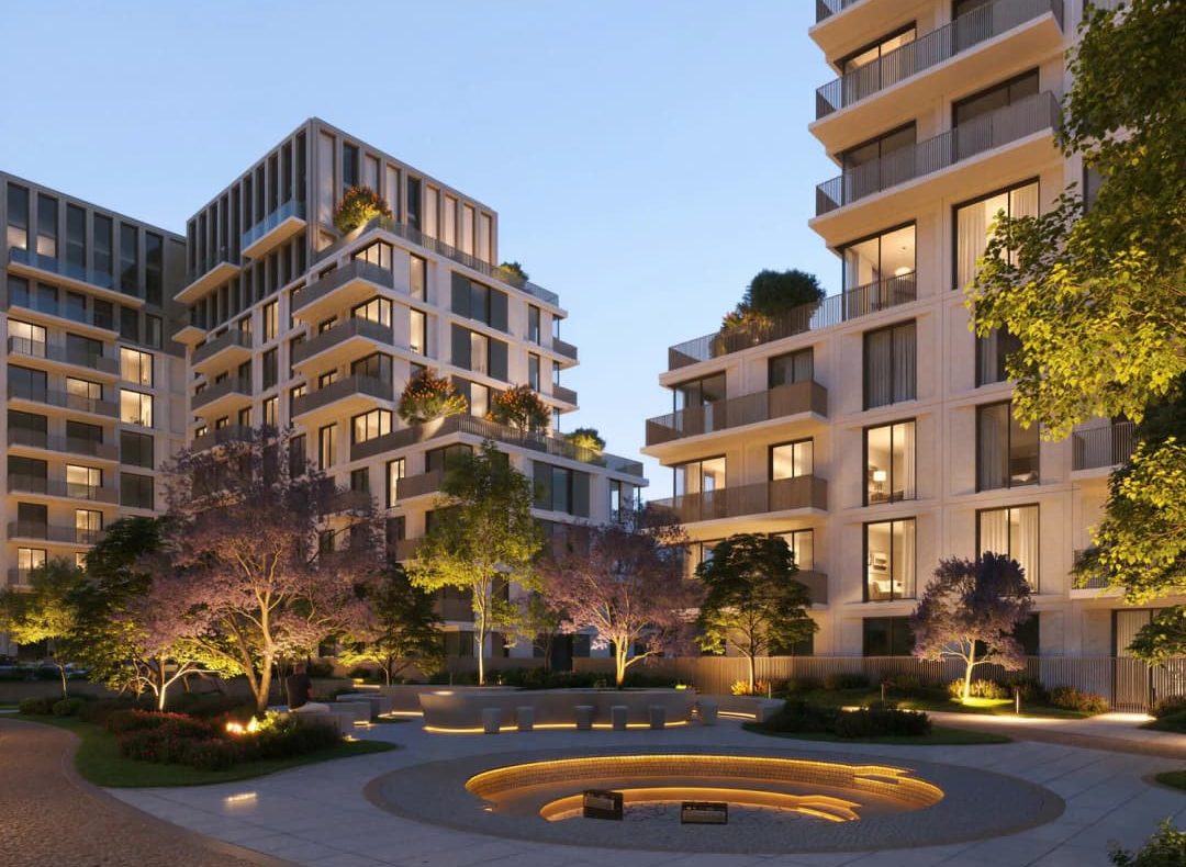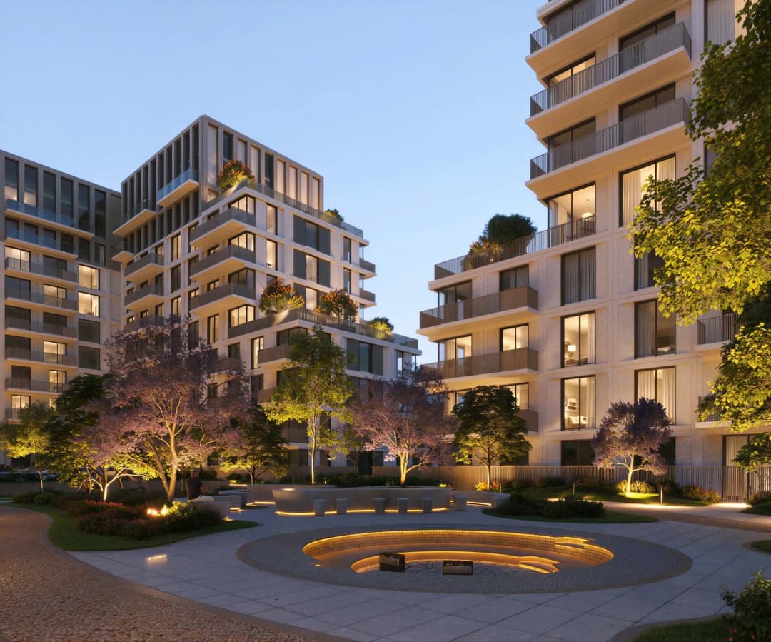 Interiors are finished with modern, high-quality materials and a clean, contemporary aesthetic. Apartments feature well-designed layouts with refined flooring, elegant wall finishes, and large windows that enhance natural light. Kitchens are fully fitted with quality cabinetry, durable countertops, and integrated appliances, while the residences are delivered semi-furnished, providing essential built-in elements that allow residents to personalize their living space.