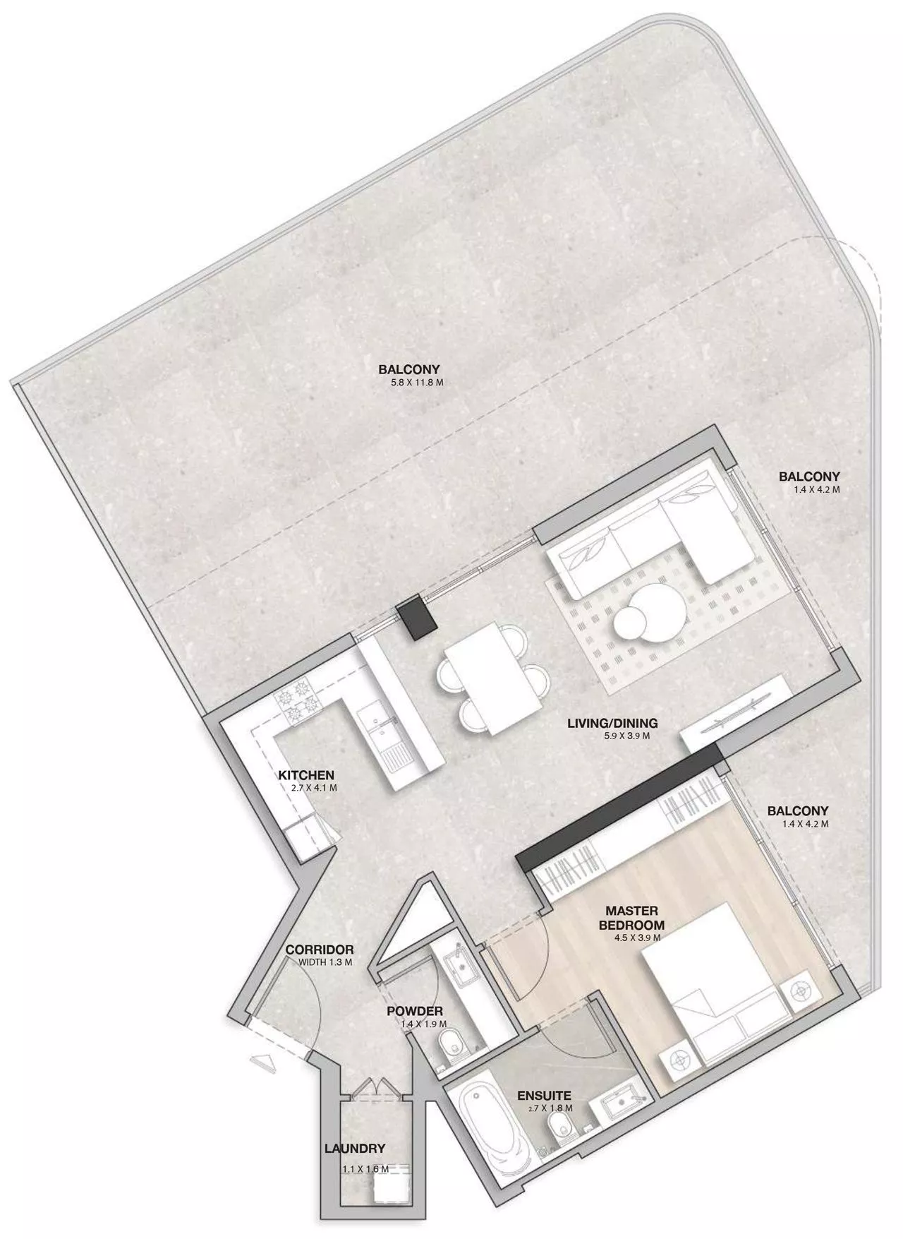 1 Bedroom Apartment (813 sqft -1629 sqft)
