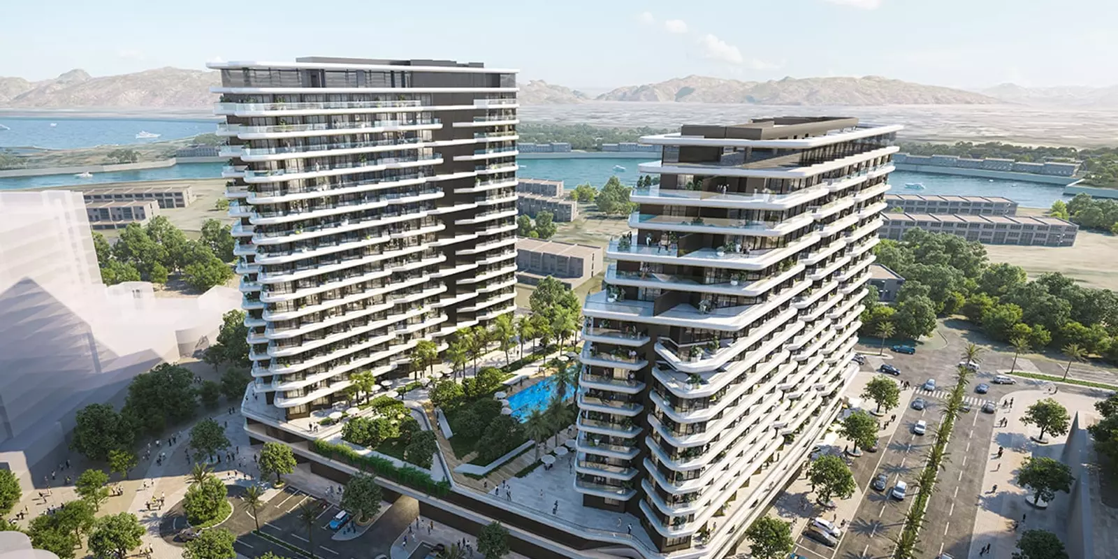 Bayviews on Hayat Island welcome you. RAK Properties brings you this spectacular beachside development in the heart of Mina Al Arab, Ras Al Khaimah. Bayviews is a beautiful combination of modern residential living and ultimate lifestyle facilities, with two towering residential buildings 14 and 17 floors high.