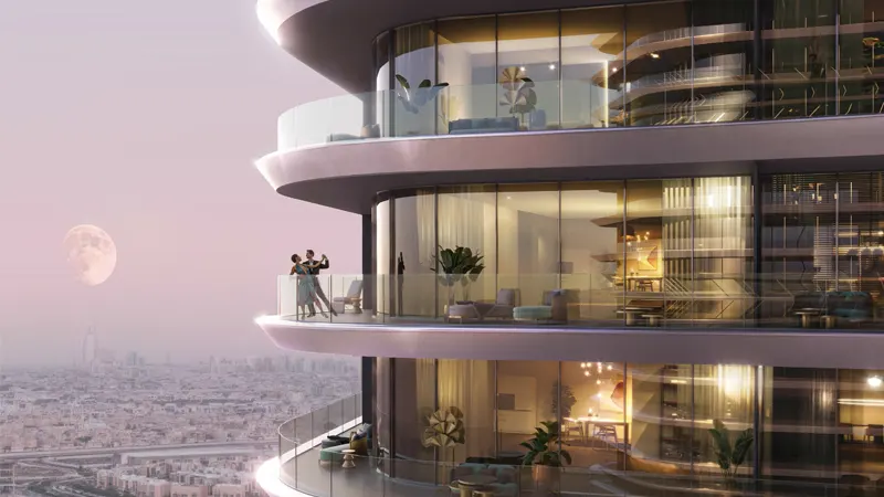 Discover the new residential epitome Binghatti Hills at Dubai Science Park, a luxurious residential development by Binghatti Developers with studios, 1 & 2-bedroom apartments. Inspired by the natural contours of rolling hillsides, the façade aims to capture a serene ambiance and translate it into a stunning architectural design. Boasting one of the largest buildings in the world, this development stands out with its unique blend of smart home features, state-of-the-art interiors, and a diverse view of Dubai’s iconic skyline.