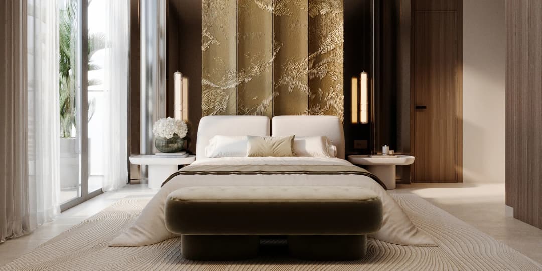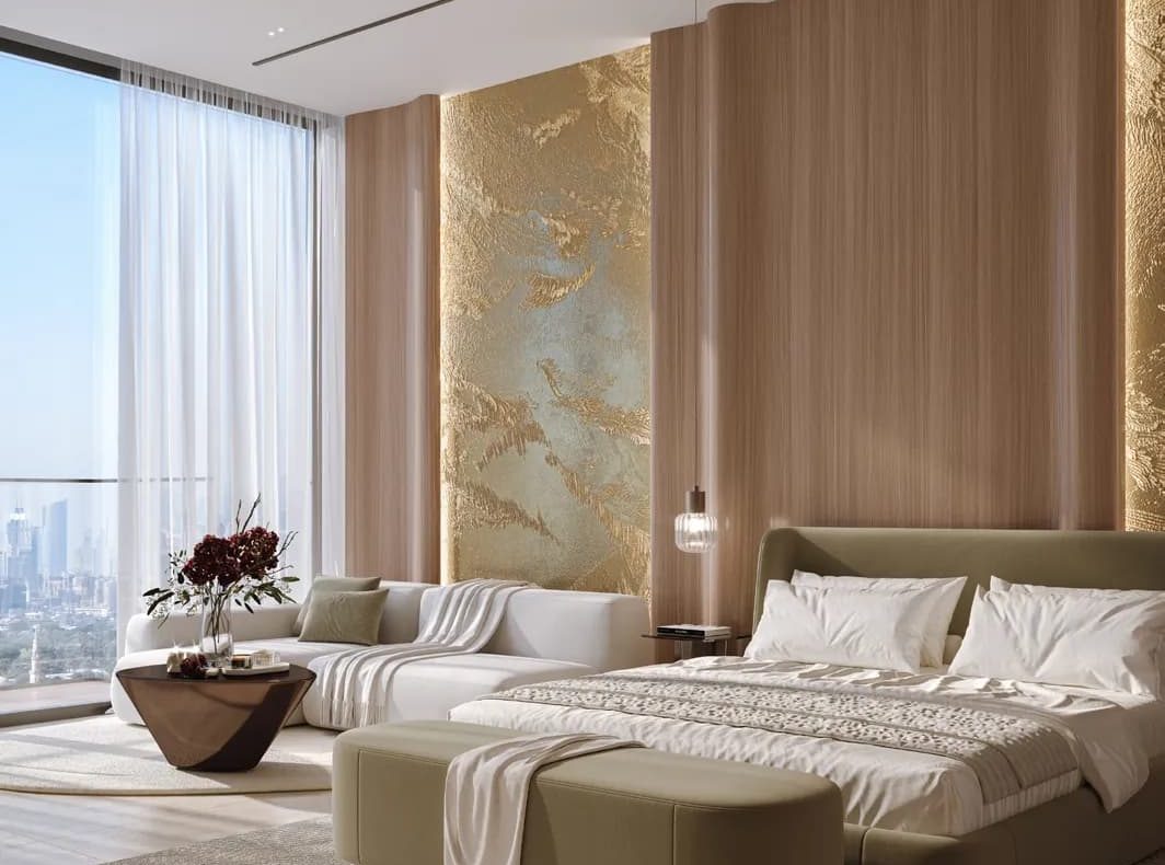 Interiors are defined by a restrained, elegant material palette featuring natural stone, marble finishes, warm wood textures, bronze-accented metal details, glass elements, and bespoke wall coverings. Kitchens are designed with stone countertops and contemporary cabinetry, complemented by integrated appliances where applicable. Residences are delivered with refined interior finishes and semi-furnished layouts, allowing for both immediate comfort and personal customization, while maintaining a consistent standard of craftsmanship throughout the project.