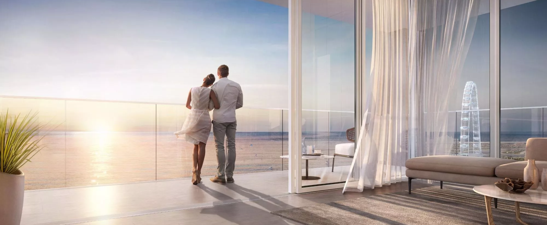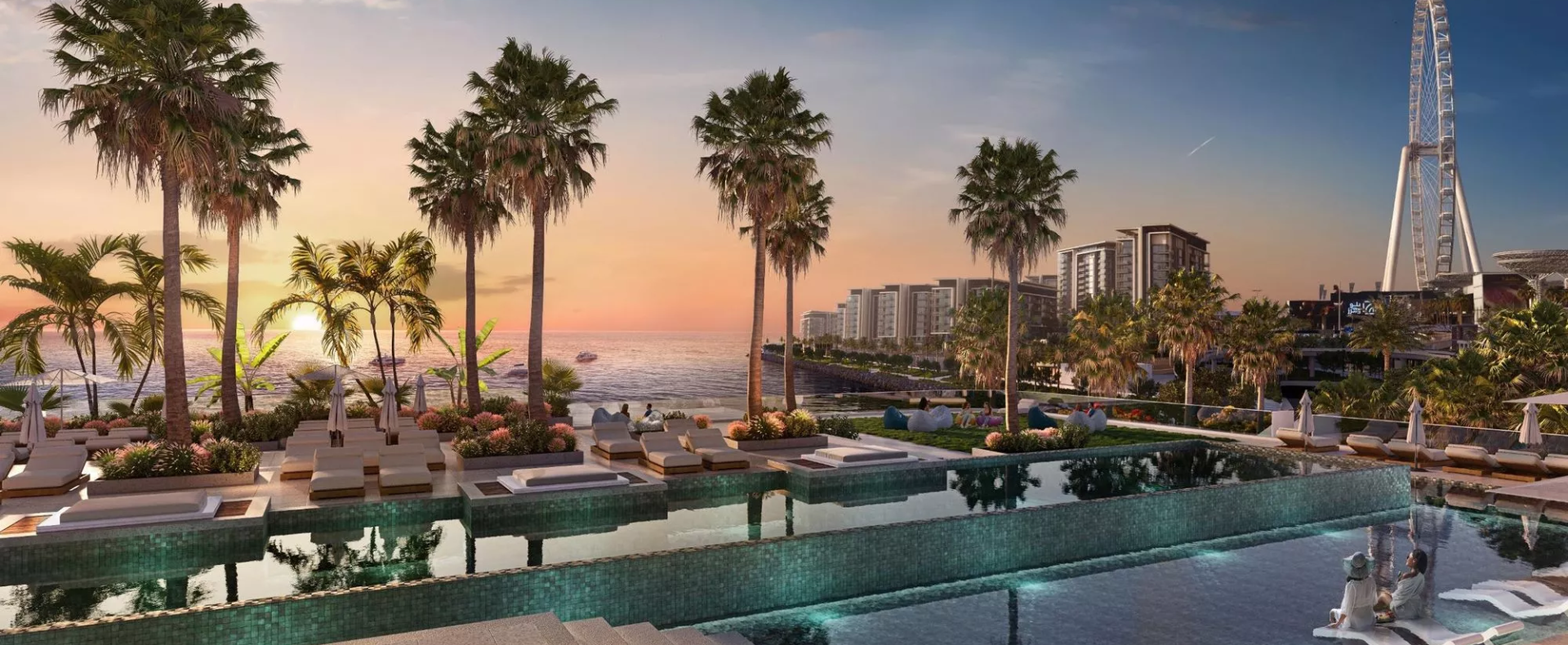 The size of the apartments in Bluewaters Bay varies between 800 sq. ft and 3,050 sq. ft, while the layouts include one or more balconies, overlooking the stunning Dubai waterfront and the iconic Ain Dubai. It is worth noting that select 2-bedroom apartments and all 3–4 bedroom residences will include a maid’s room, a dressing area and a powder room. From your master bedroom you will be able to enjoy an unparalleled sea view, allowing you to enjoy the gorgeous sunsets.