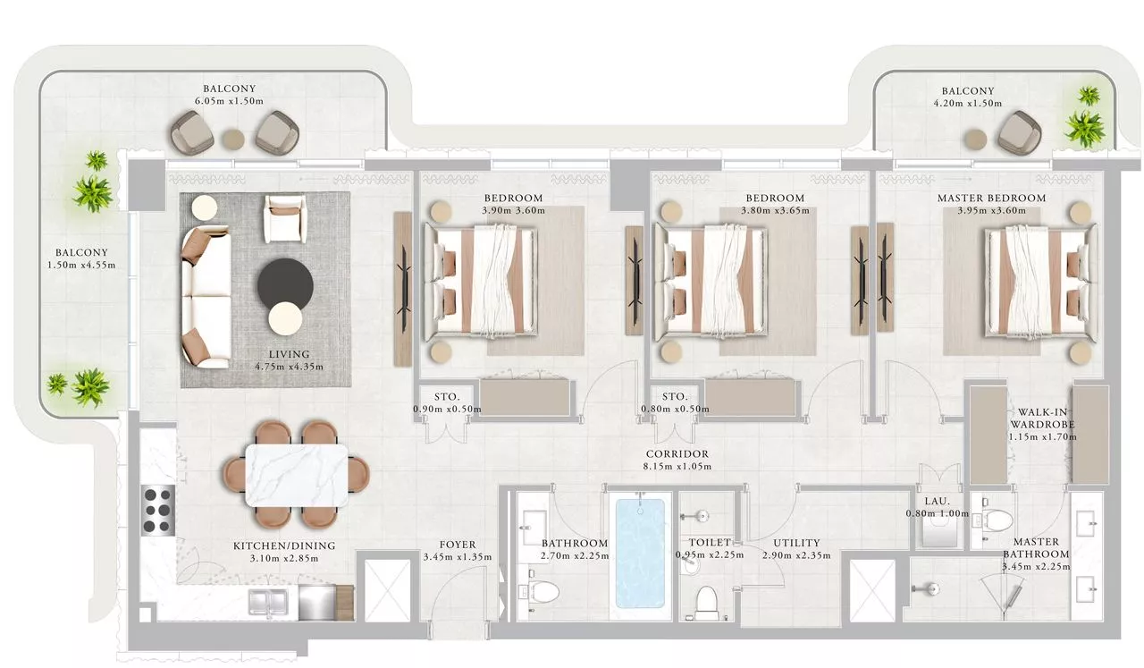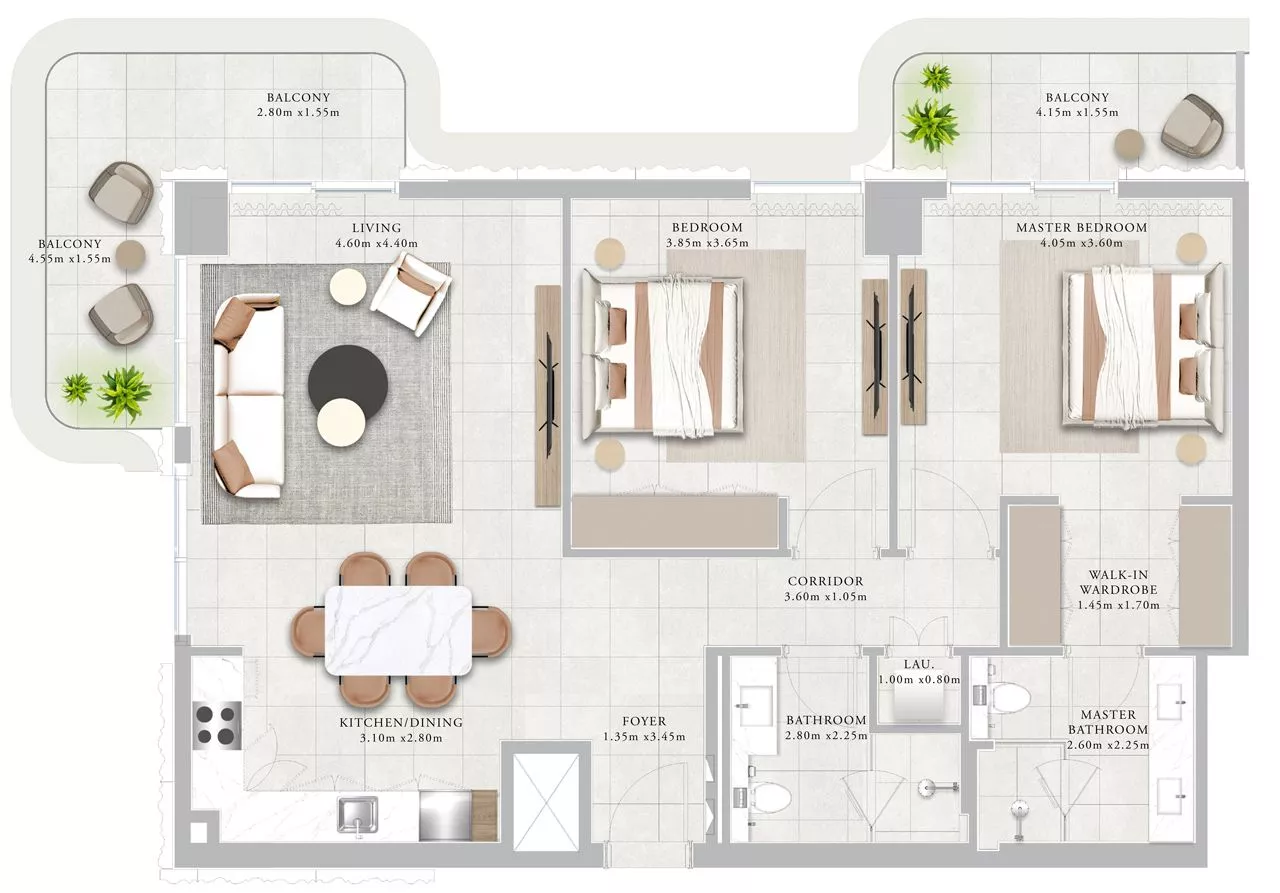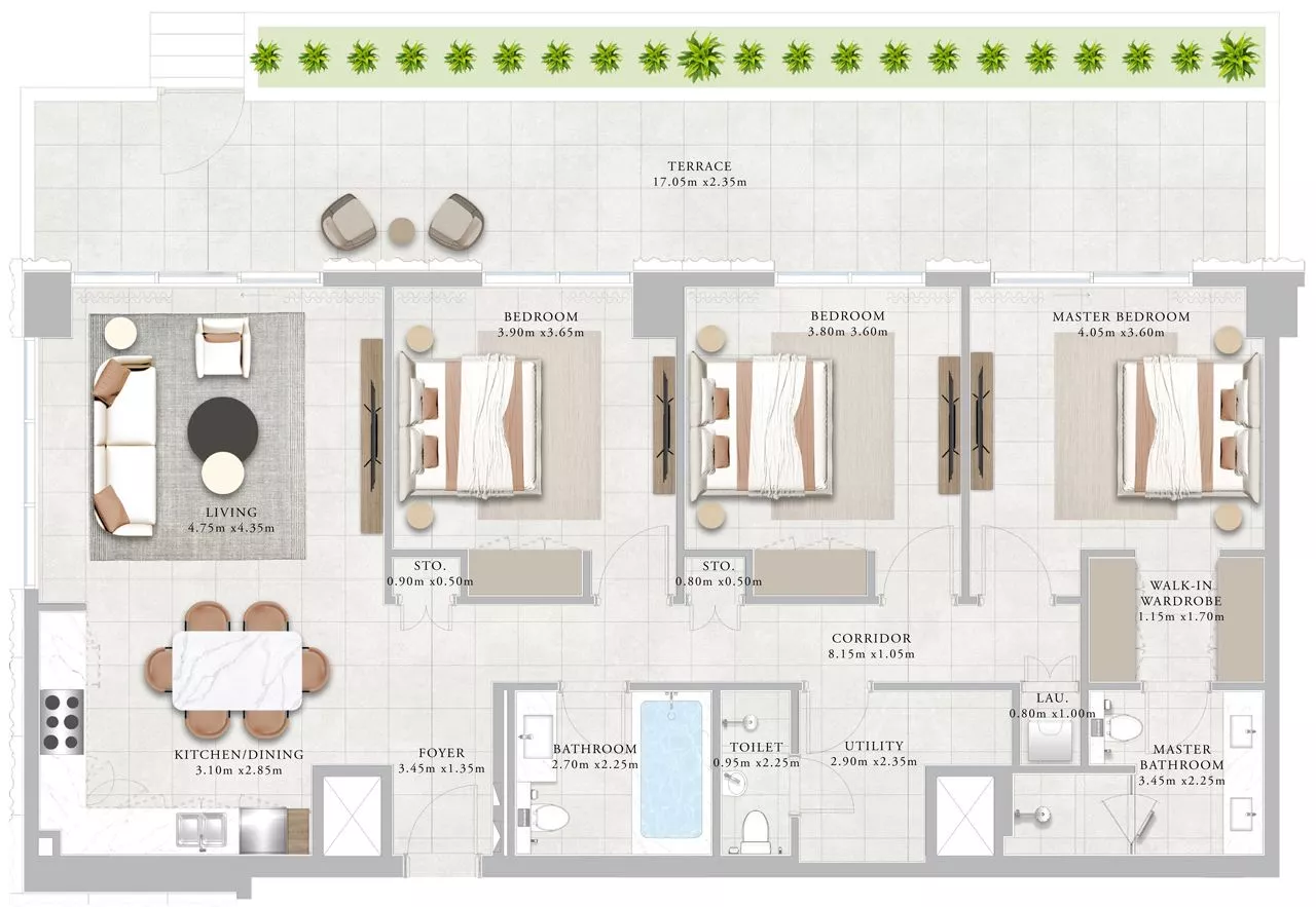 Each unit comes with kitchen appliances, which will stun you with the high quality. For your utmost convenience, the layouts include terrace/balconies, a walk-in wardrobe, and a laundry room. The duplexes additionally come with a maid’s room.