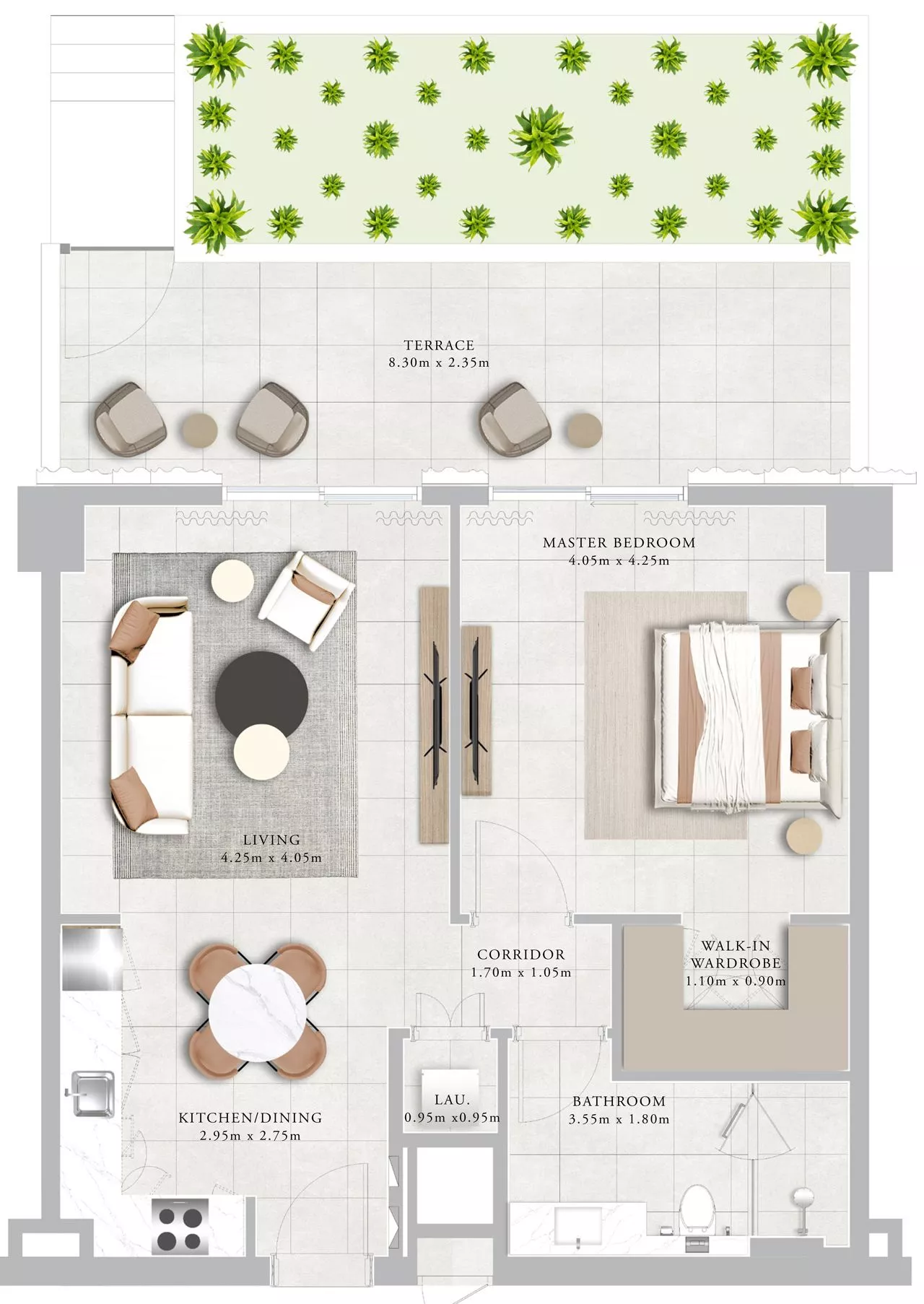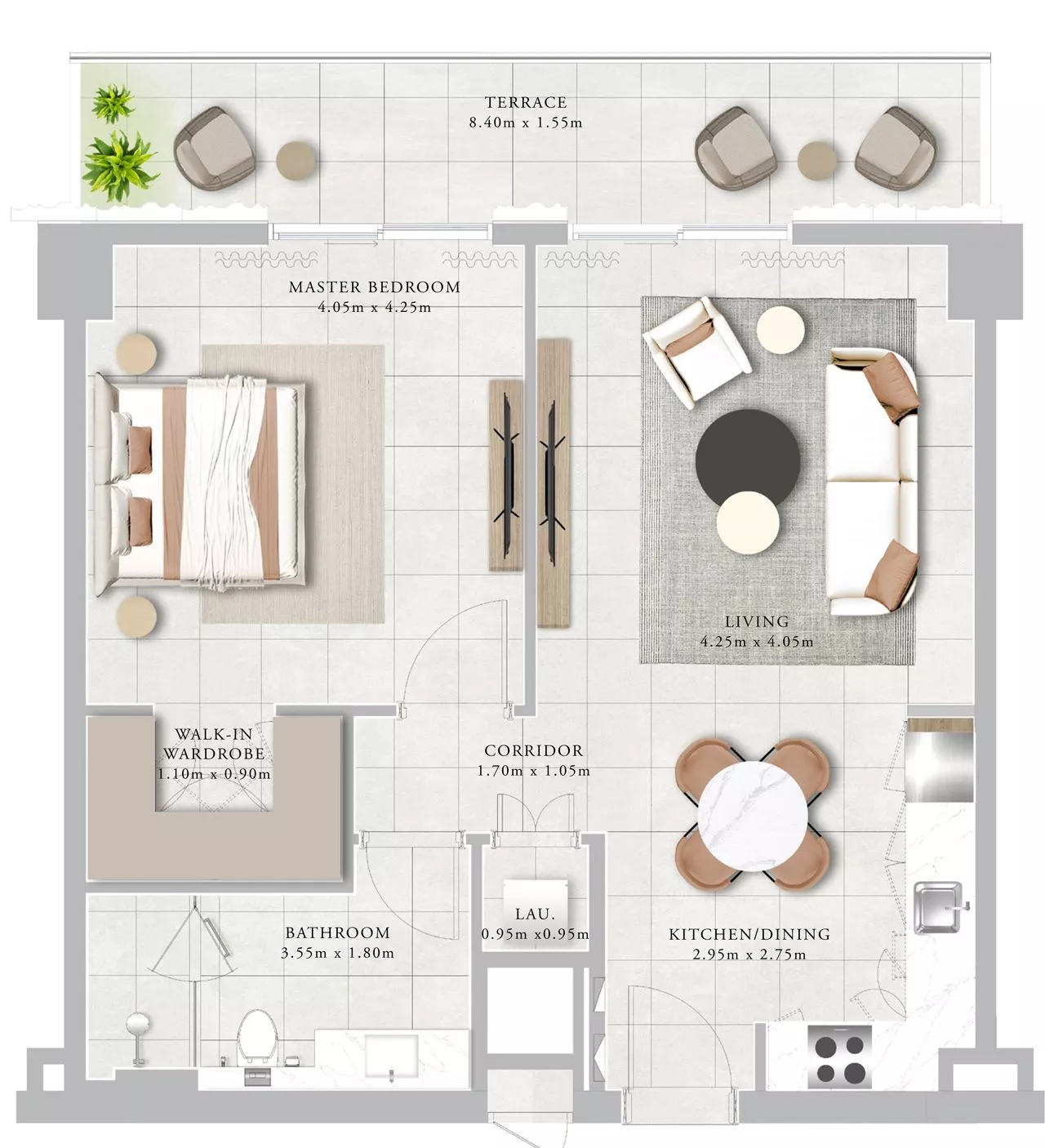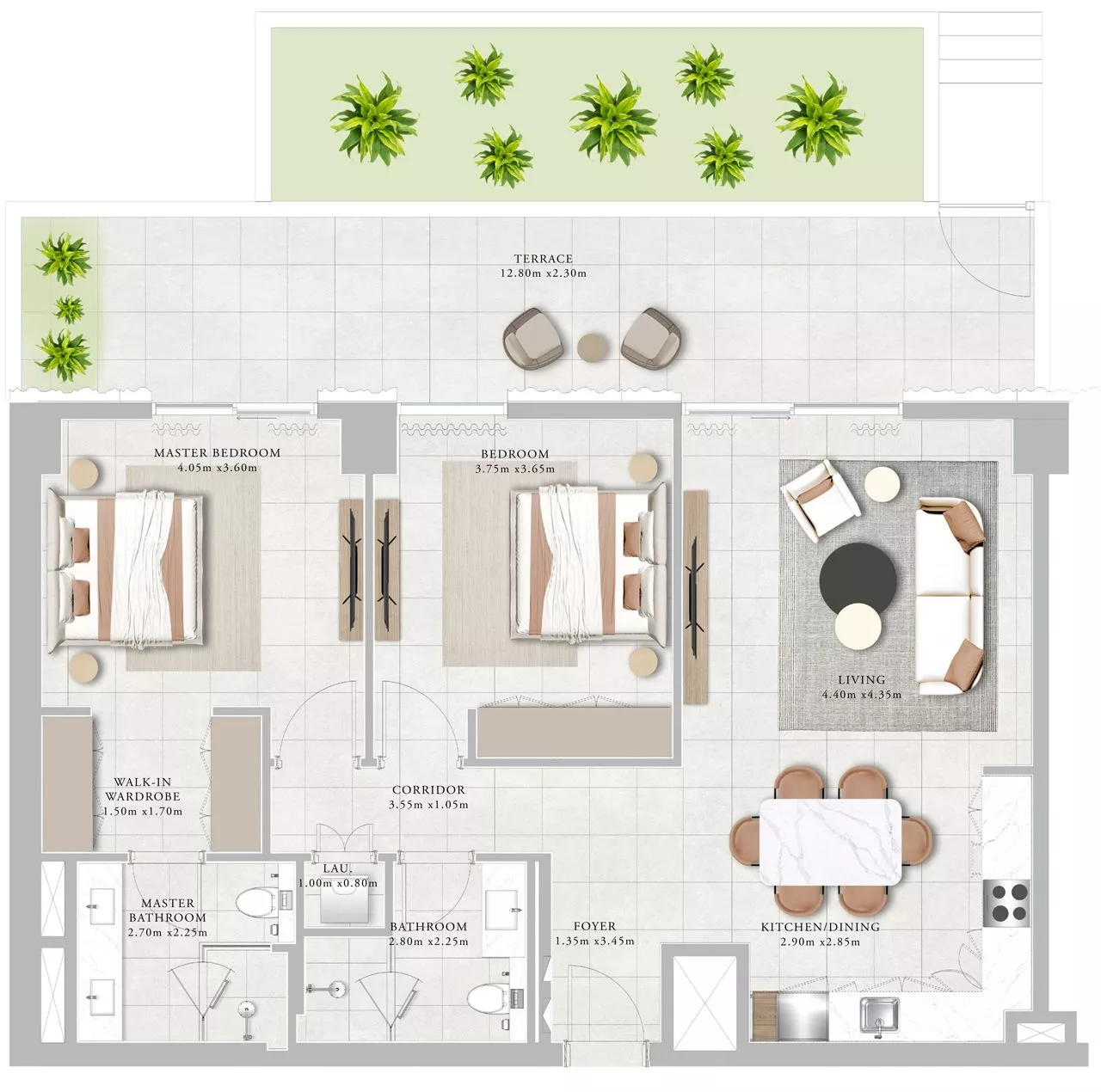 Each unit comes with kitchen appliances, which will stun you with the high quality. For your utmost convenience, the layouts include terrace/balconies, a walk-in wardrobe, and a laundry room. The duplexes additionally come with a maid’s room.