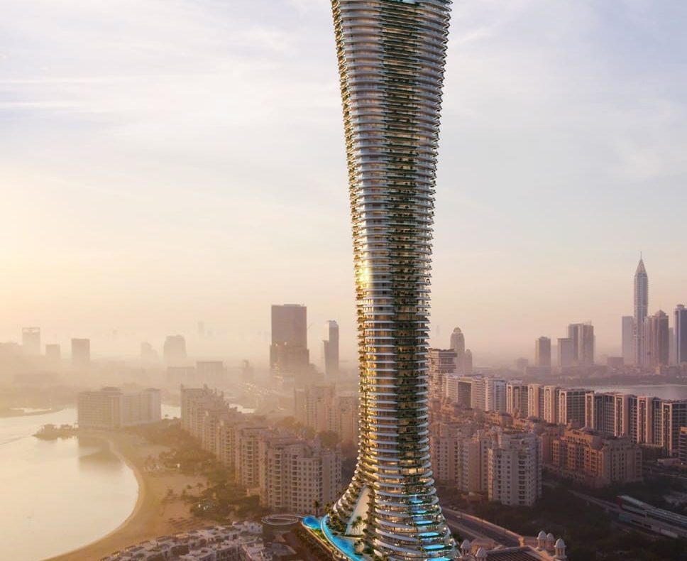 Nestled on the coveted Palm Jumeirah, Como Residences is an uber-luxe water-inspired development by Nakheel. Oozing the ultimate elegance and magnificence, the stunning tower will take the shape of an organic seashell, rising towards the sky. Como Residences offers just 76 limited-edition residences, namely 2–6 bedroom apartments, 7-bedroom duplexes and one spectacular 5-bedroom duplex penthouse. The complex will consist of 75 storeys (G+3P+71) and is set to become the tallest on the island, measuring 984 ft.