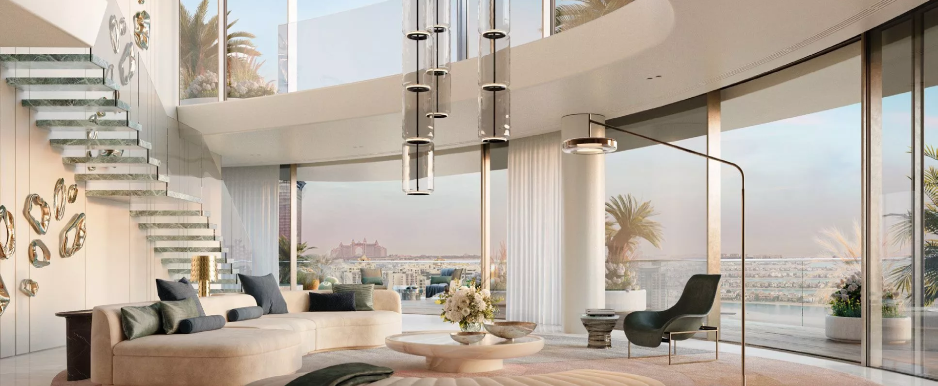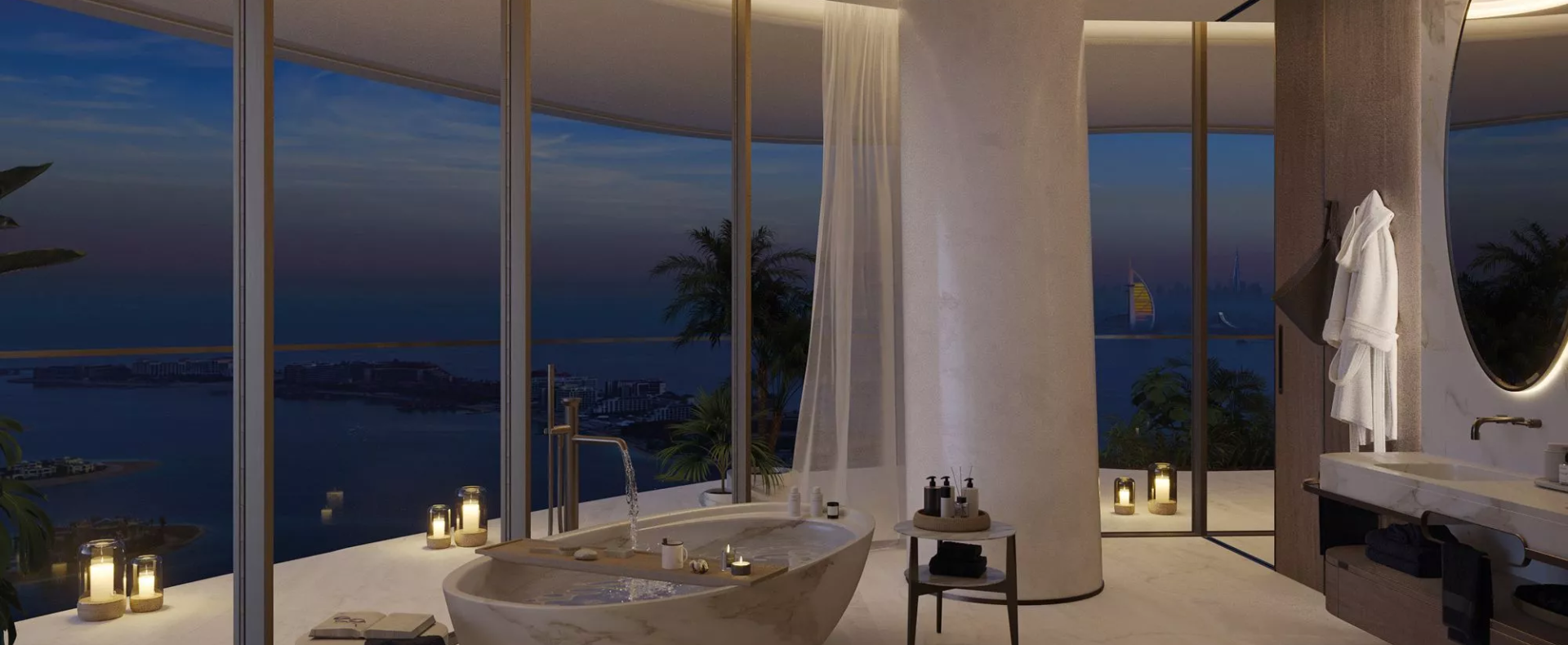Thanks to the innovative design, each exclusive unit will enjoy either 180 or 360-degree panoramic views of the Burj Khalifa, the Burj Al Arab, Palm Jumeirah and Ain Dubai. Among the key features of the properties are branded kitchen appliances, high ceilings in the living rooms, floor-to-ceiling thermally insulated windows and smart home features. Please note that there will be 3 design colour schemes to select from: Opal — White, Mist — Grey, Sand — Beige.
