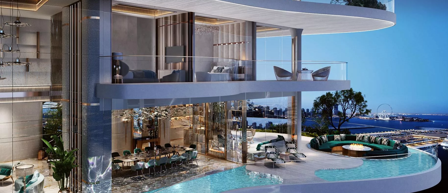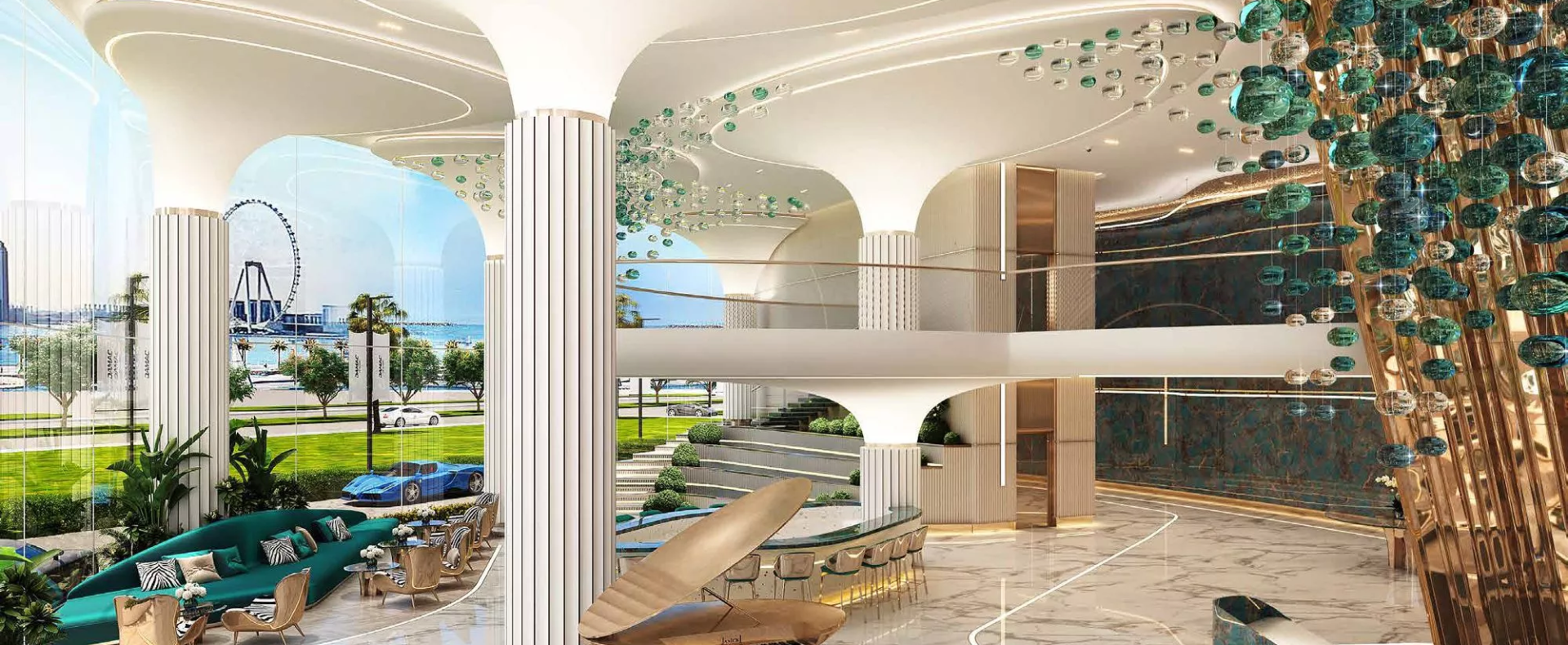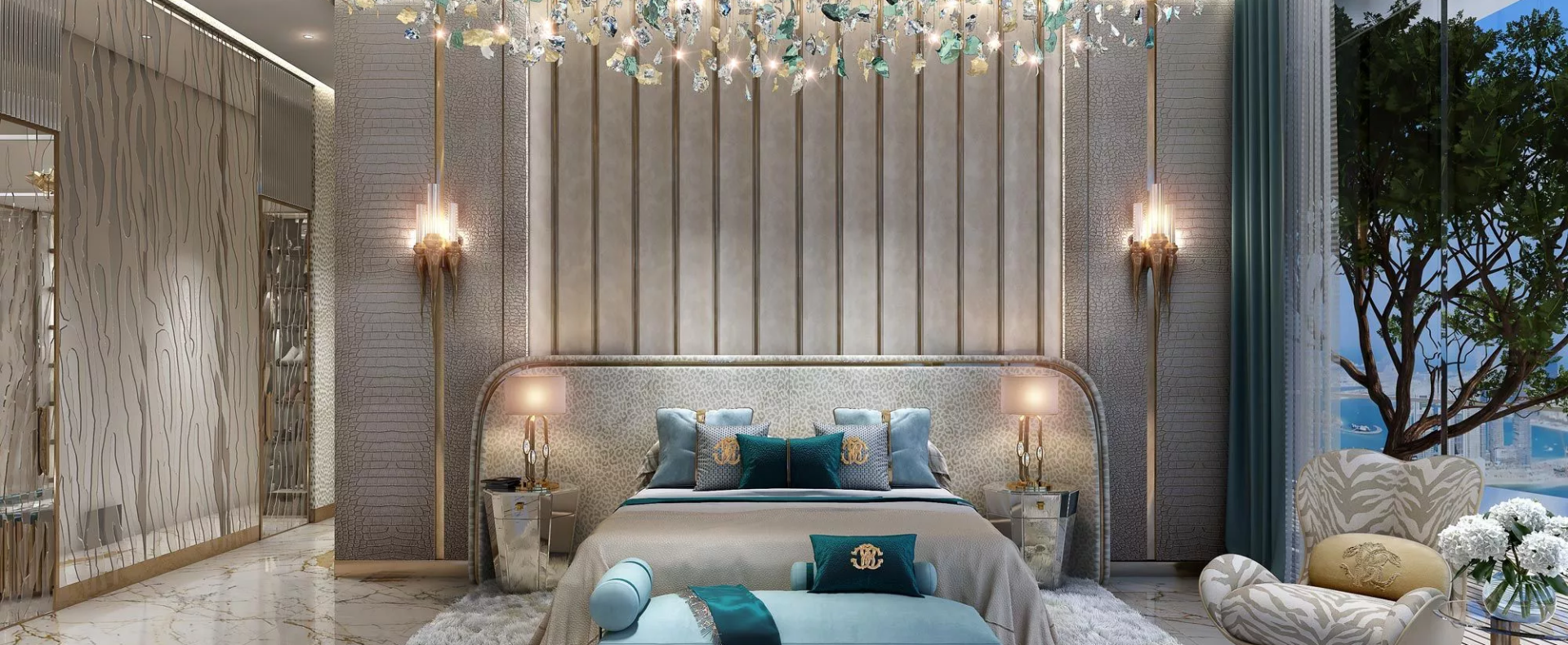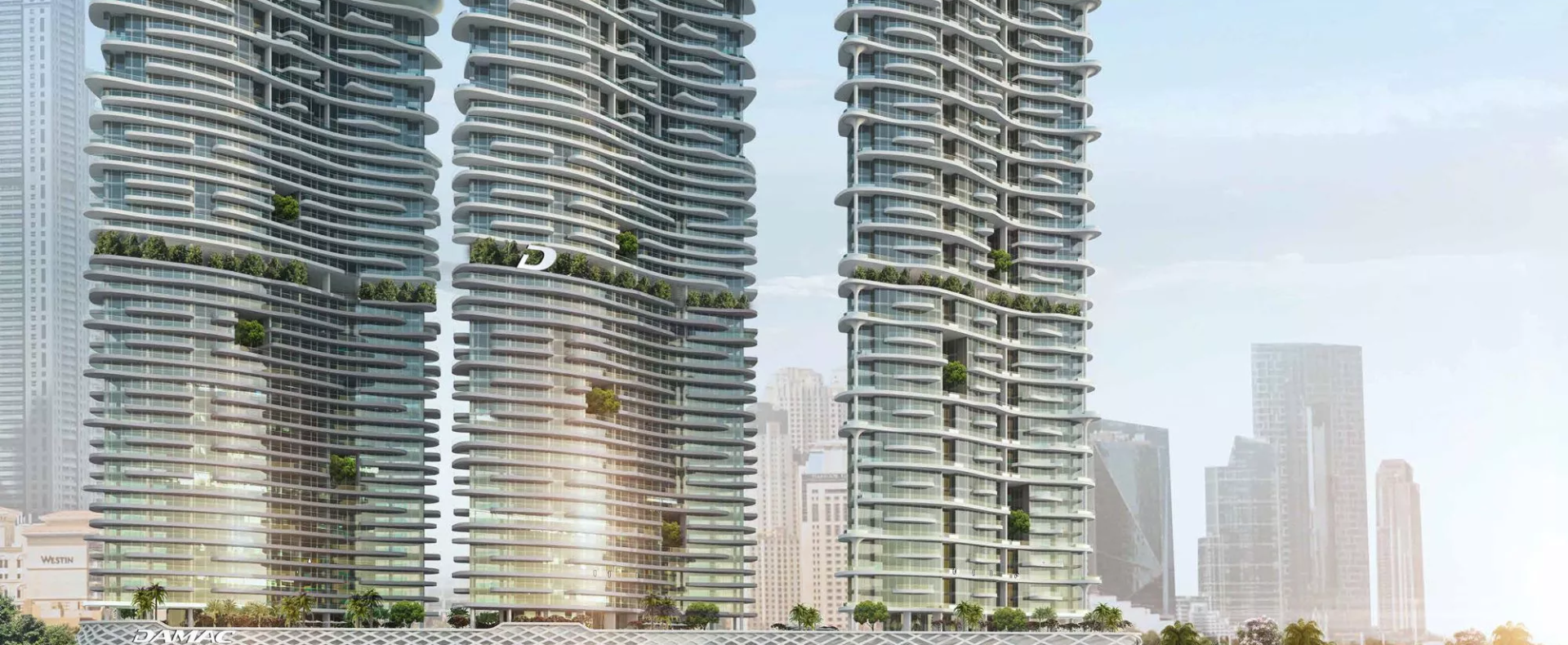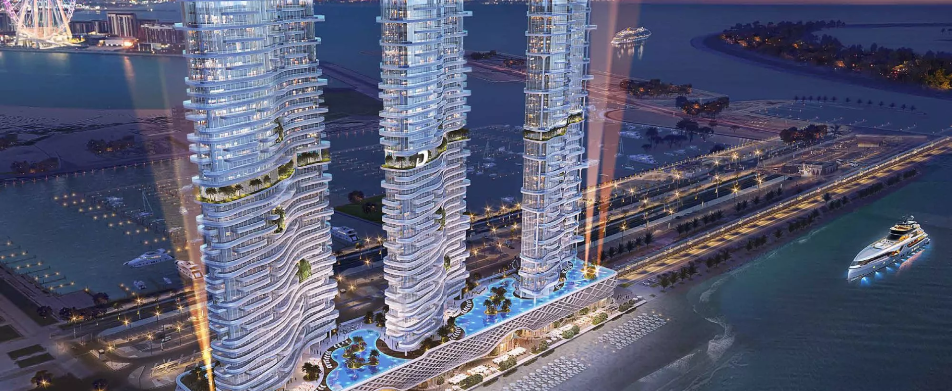Set to become the next trending landmark in Dubai Harbour, DAMAC Bay by Cavalli is an elite 3-tower development by DAMAC Properties, in partnership with the world-renowned Cavalli brand. Prospective real estate buyers are presented with the opportunity to select their dream home from a range of exquisitely crafted ‘luxury’ apartments with 1–3 bedroom configurations. Those who want to experience a more elevated lifestyle can consider acquiring one of the limited-edition 3–5 bedroom duplexes with private swimming pools from the ‘super-luxury’ category, located on the upper floors of the branded complex. In addition, there are full-floor units available, as well under lucrative purchase conditions. Not forgetting the exclusive Skycrest Collection with upscale residences on the upper floors. The distinctive feature of the development is a 270-degree view of the beautiful surrounding landscapes.
