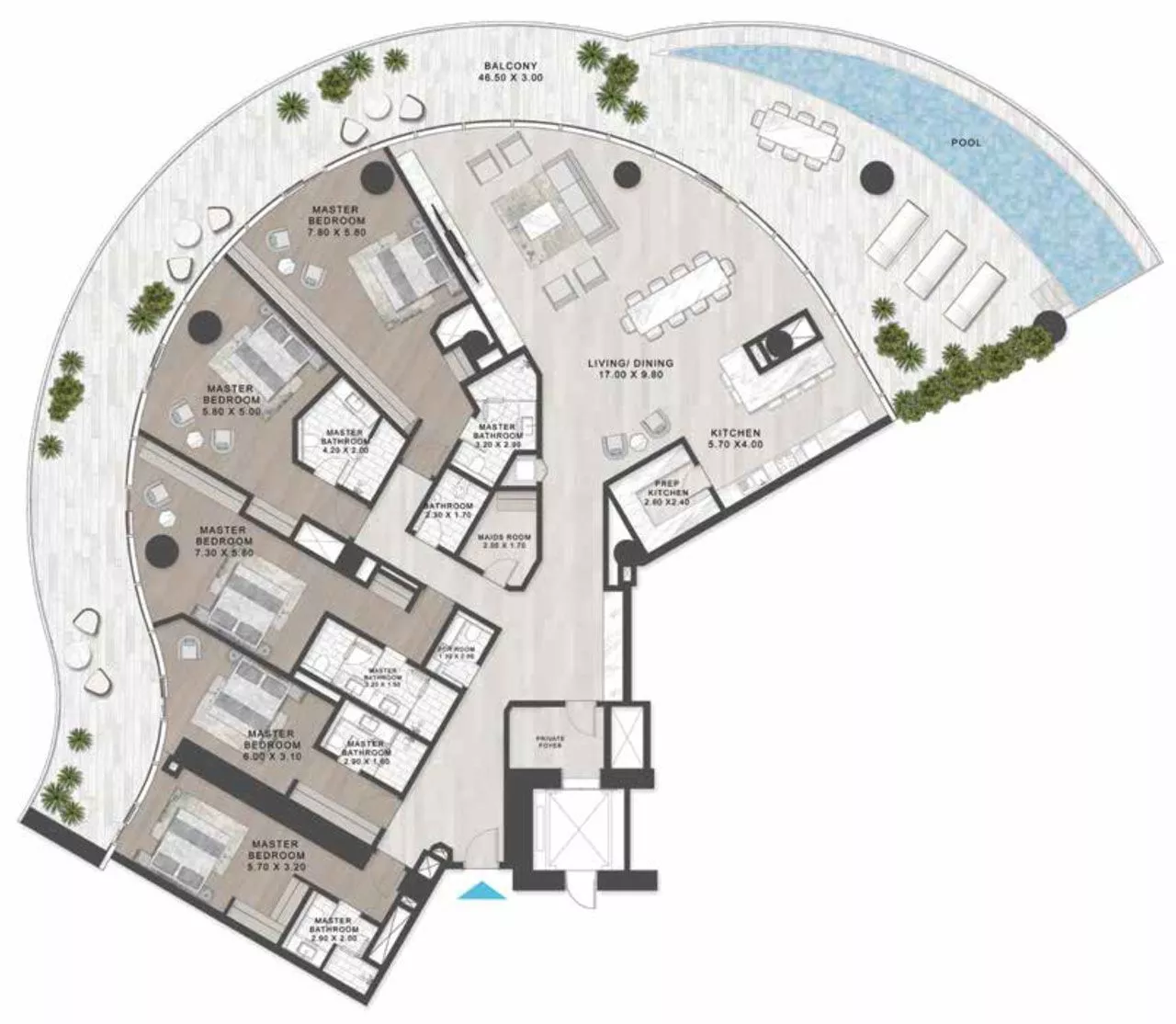 Residents of the super-luxury residences will be able to soak in the resort-like atmosphere of their private oasis-vibe pool. Units from this segment also come with a private lift, a maid’s room and a preparatory kitchen.