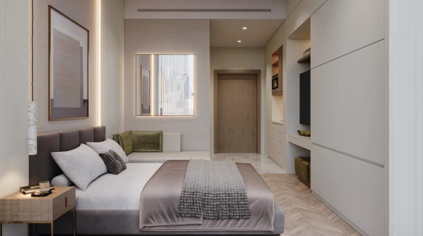 Elmora by Neoterra Developments embodies a vision of refined urban living where modern design meets thoughtful comfort. Situated in Jumeirah Garden City, near Sheikh Zayed Road, the project offers a tranquil lifestyle in the heart of Dubai’s vibrant pulse. With only 85 fully furnished residences, Elmora combines architectural elegance with the warmth of a private retreat. The building’s contemporary façade, soft landscaping, and curated lighting create a welcoming atmosphere framed by panoramic views of Burj Khalifa, Dubai Frame, and Museum of the Future.