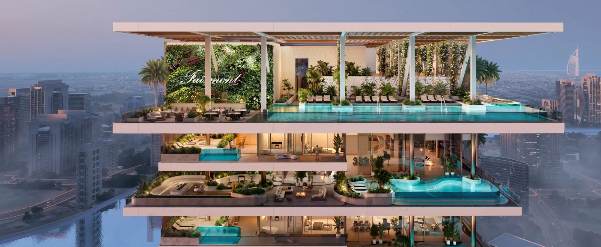 Fairmont Residences Solara Tower Dubai in Downtown Dubai offers 246 meticulously crafted 1-4 bedroom apartments and 5-bedroom duplex penthouses from 1,106 sq. ft to 19,637 sq. ft. Boasting breathtaking views of the Burj Khalifa and Dubai Water Canal, these residences feature Miele-equipped kitchens and expansive terraces. With world-class amenities, including a rooftop pool and a golf simulator, this is a residence that empowers you to live your best life. All units, except 1-bedroom apartments, include a maid’s room.