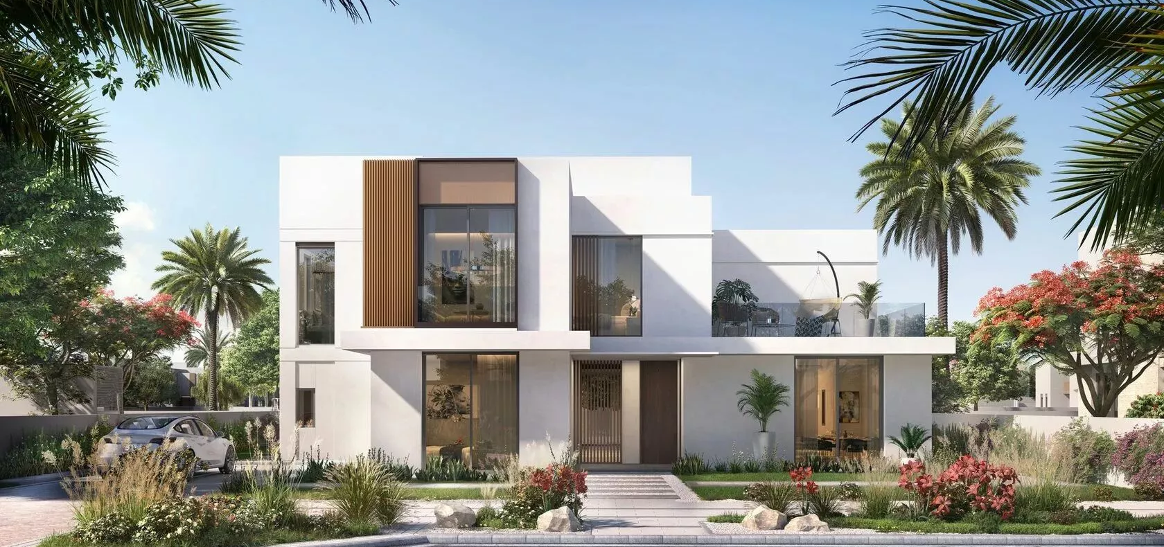Fay Al Reeman II is the second phase of Aldar Properties’ large-scale Fay Al Reeman community located in Abu Dhabi, in the Al Shamkha district, which is far from the bustling capital city. The project, presented in February 2023, is the latest addition to the Alreeman freehold area and will comprise 557 three–six bedroom villas ranging in size from 3,272 sq. ft to 5,238 sq. ft. All homes will be 2-storey’s with layouts including balconies, terraces, indoor and outdoor majilis and a maid’s bedroom. Detached plots range in size from 5,705 sq. ft to 11,570 sq. ft and can be fitted with an optional private swimming pool. The residences will also have 2–5 parking spaces depending on their size.