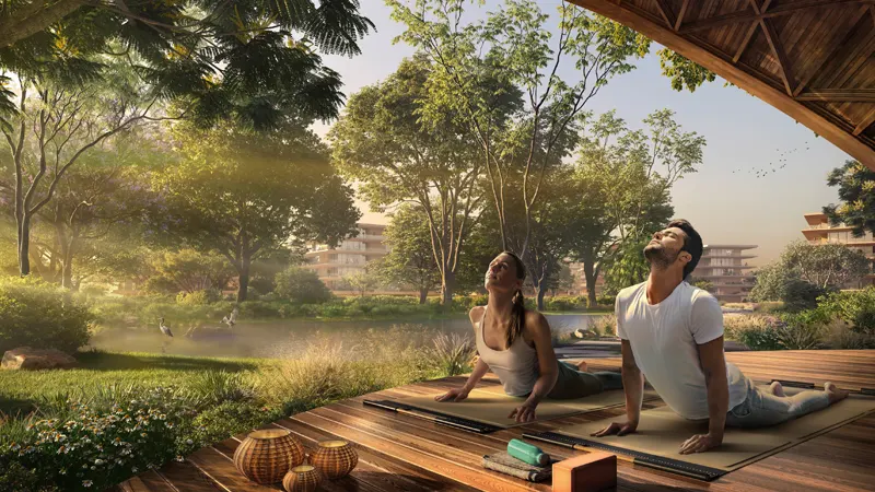 Strategically located next to Global Village and flanked by Sheikh Mohammed Bin Zayed Road and Sheikh Bin Hamdan Al Nahyan Street, it offers excellent connectivity to various parts of Dubai, making it a prime residential and investment area. This unique community aspires to be one of Dubai’s top 10 must-visit destinations, blending urban convenience with nature’s tranquility. The community emphasizes pedestrian-friendly design, with innovative common areas and discreet underground parking. This thoughtful approach enhances safety and convenience, fostering seamless navigation and a strong connection to nature.