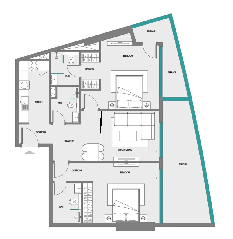 The residences are designed with modern interiors that emphasize flexibility, elegance, and functionality. Clean architectural lines, spacious layouts, and carefully selected materials create bright and comfortable living spaces filled with natural light. Kitchens are designed with contemporary finishes and practical layouts that combine style with everyday convenience, while living areas are crafted to feel both refined and welcoming. Soft color palettes, elegant surfaces, and thoughtful design details give every home a calm, sophisticated character that supports a relaxed and enjoyable lifestyle.