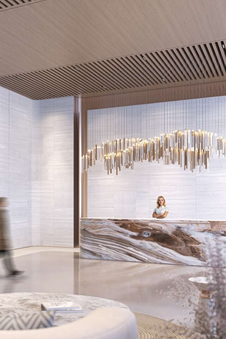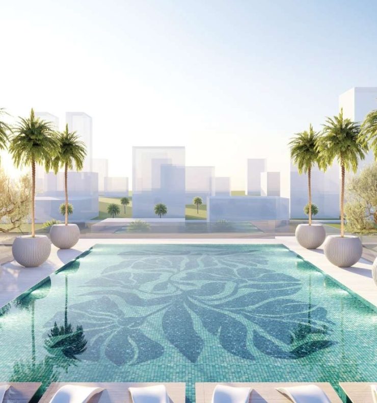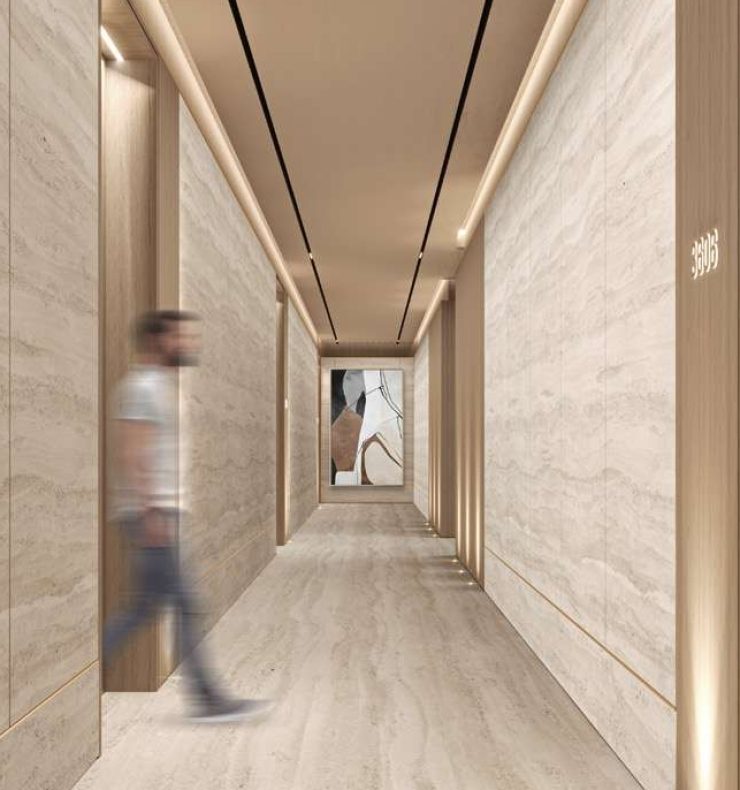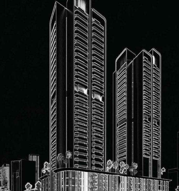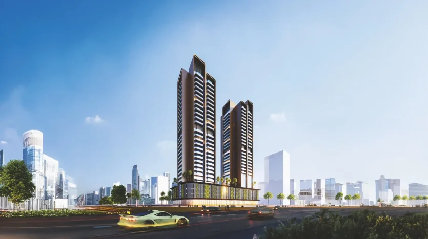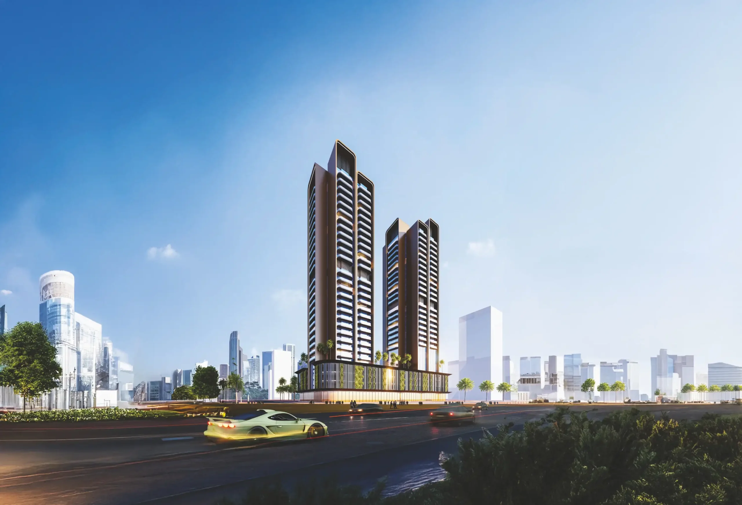 These twin towers are a visual delight characterised by their sleek, modern facades and the artistic symmetry they embody together. The central pool area not only connects the towers but also serves as a striking visual feature, setting the tone for the projects commitment to luxury and serenity. Each tower is a harmonious balance of form and function, with meticulously designed layouts and beautiful serene environment to entertain its guests and residents. The attention to detail in architecture extends to the shaded areas, Including the grand lobby that welcomes residents and visitors alike.