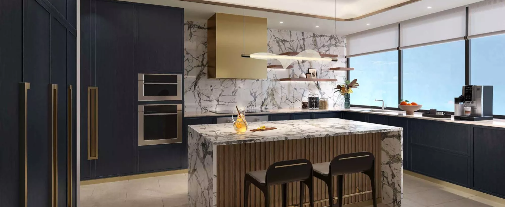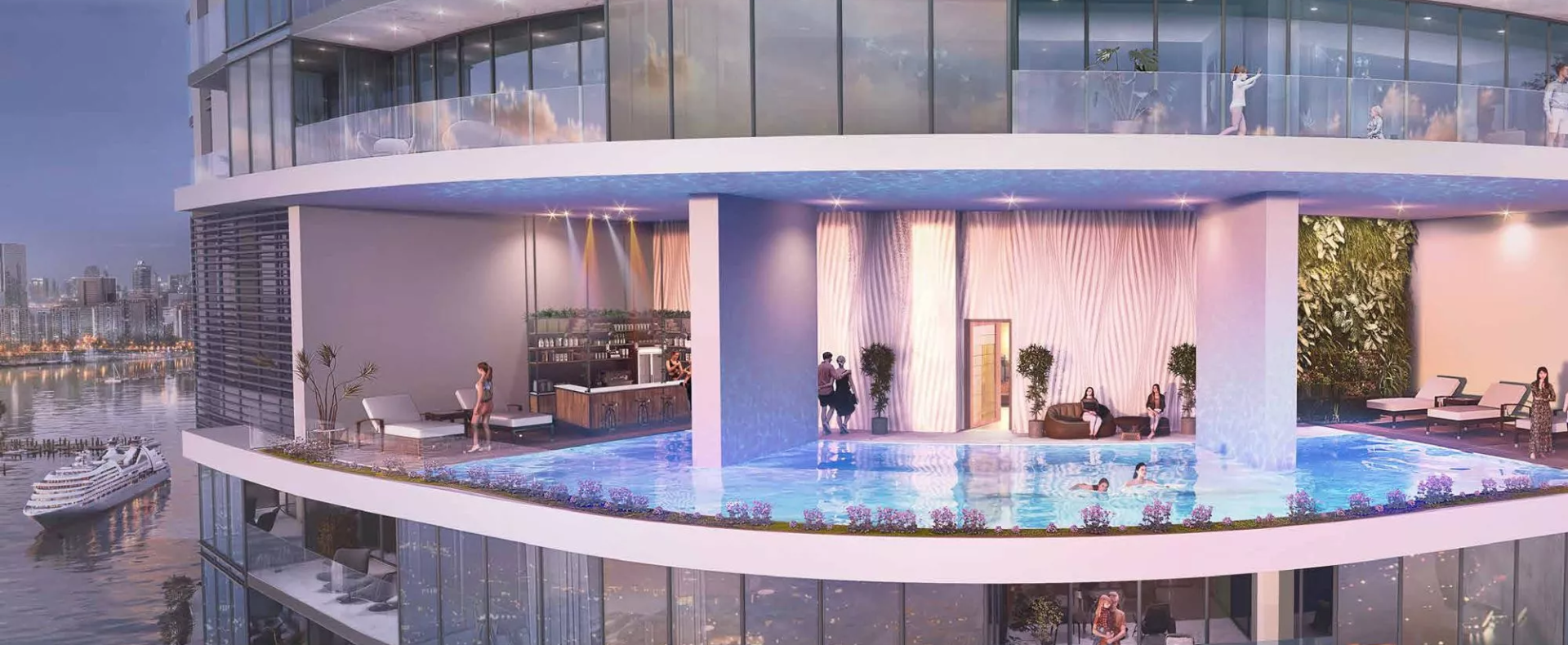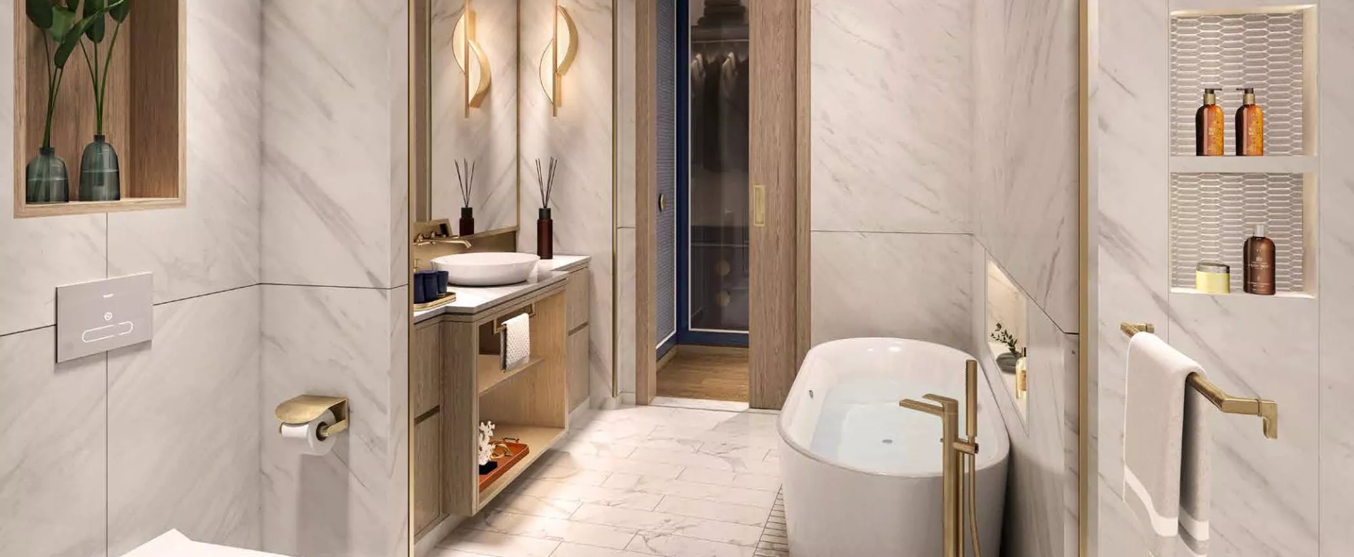 Select residences will have a private swimming pool on the terrace for the utmost convenience of the homeowners. The design of the apartments will feature white and gold decor, chandeliers and ceiling mirrors. Throughout the development, there will be various elements of luxury cruise ships, which will wow with the utmost exquisiteness.