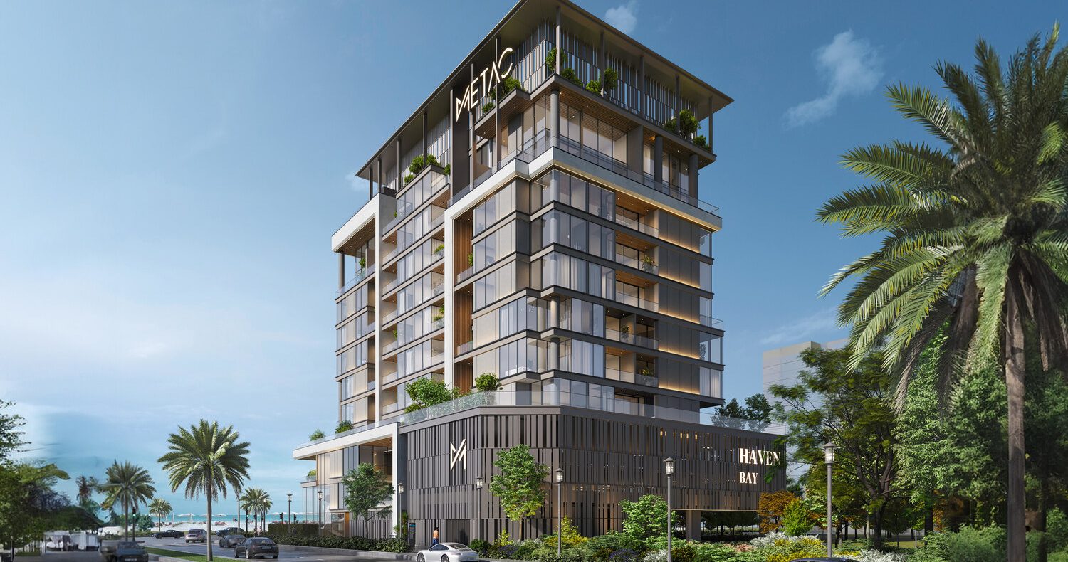 Haven Bay in Dubai Islands, Deira, this new residential project developed by Driven and Metac offers 1- to 4-bedroom apartments and duplexes, is a fusion of innovative designs and modern luxury presented in an 11-storey building comprising 64 units. with sizes ranging from 739 square feet to 6,410 square feet. Each home has been well-planned to combine comfort with elegance. They come with modern kitchens equipped with high-quality Siemens appliances, expansive panoramic windows that frame breathtaking views of the marina and a neutral palette that brings in serenity. High-end finishes add a touch of luxury, while spacious layouts maximize both, living space and functionality. Overall, the architectural design of this complex exudes a modern sophistication with clean lines complemented by contemporary aesthetics.