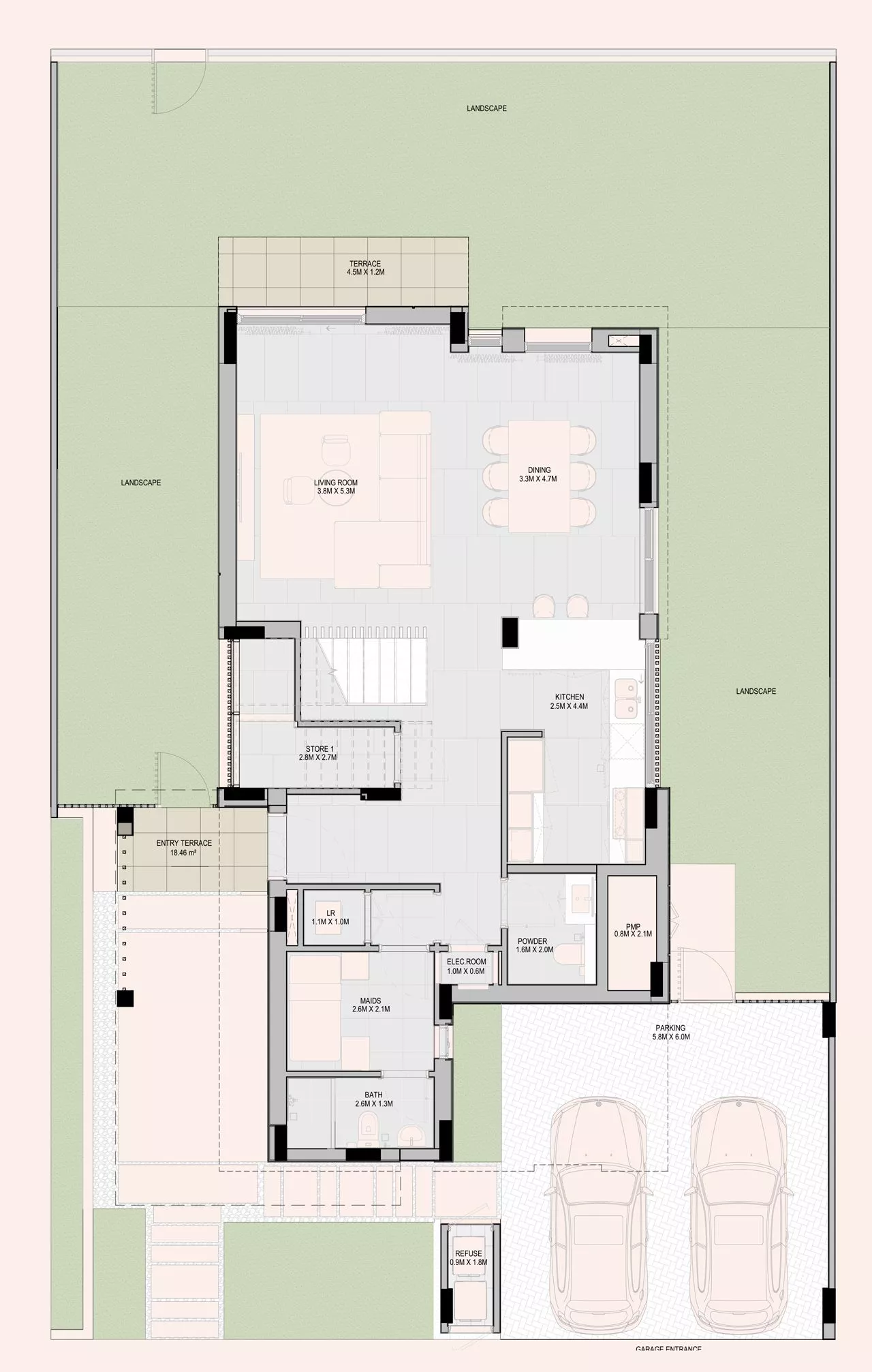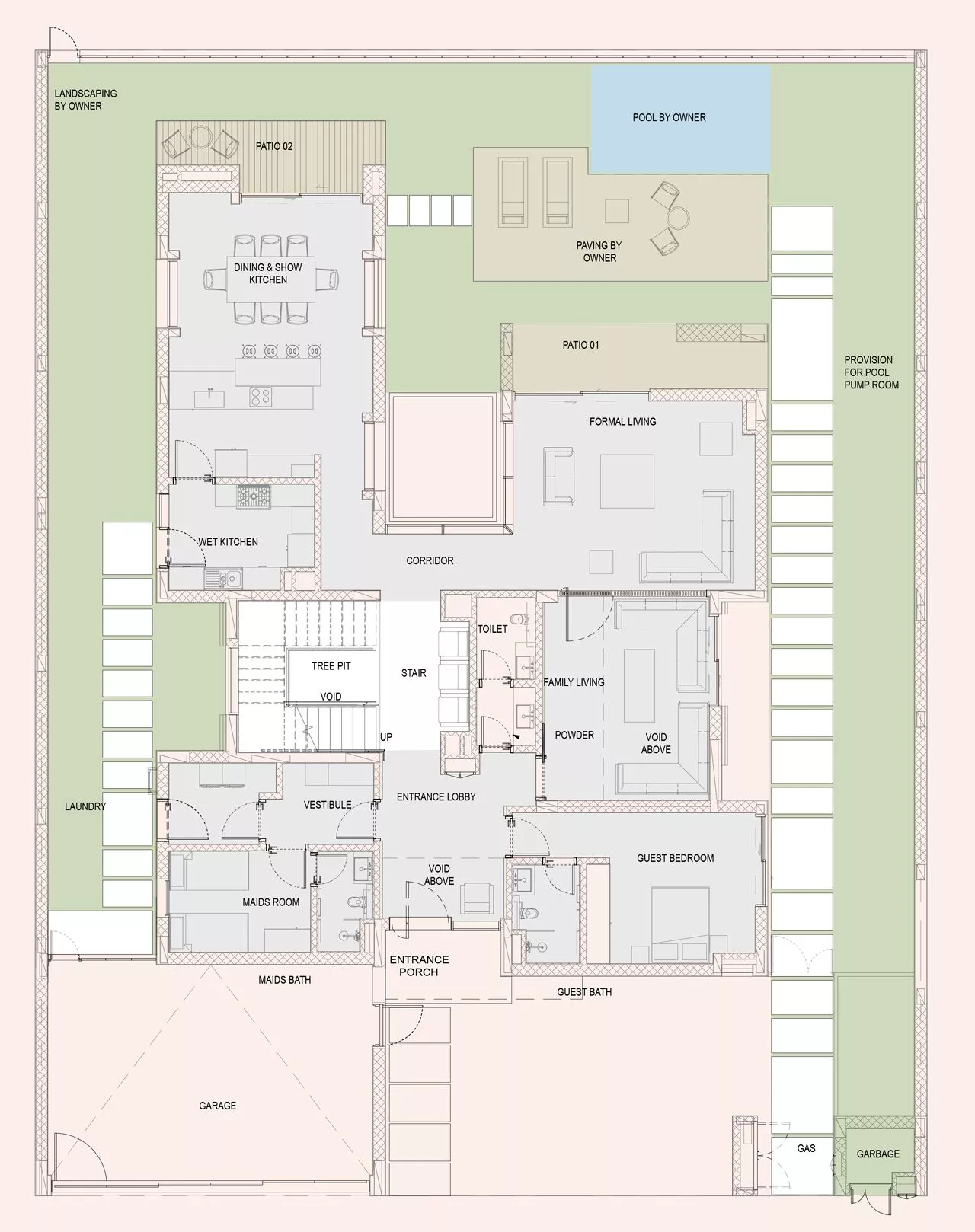 Most of the villas have 2 exterior styles: Blades or Tectonic. The layouts of the properties may include a wet kitchen, a show kitchen, a swimming pool, a terrace, and/or a maid’s room.