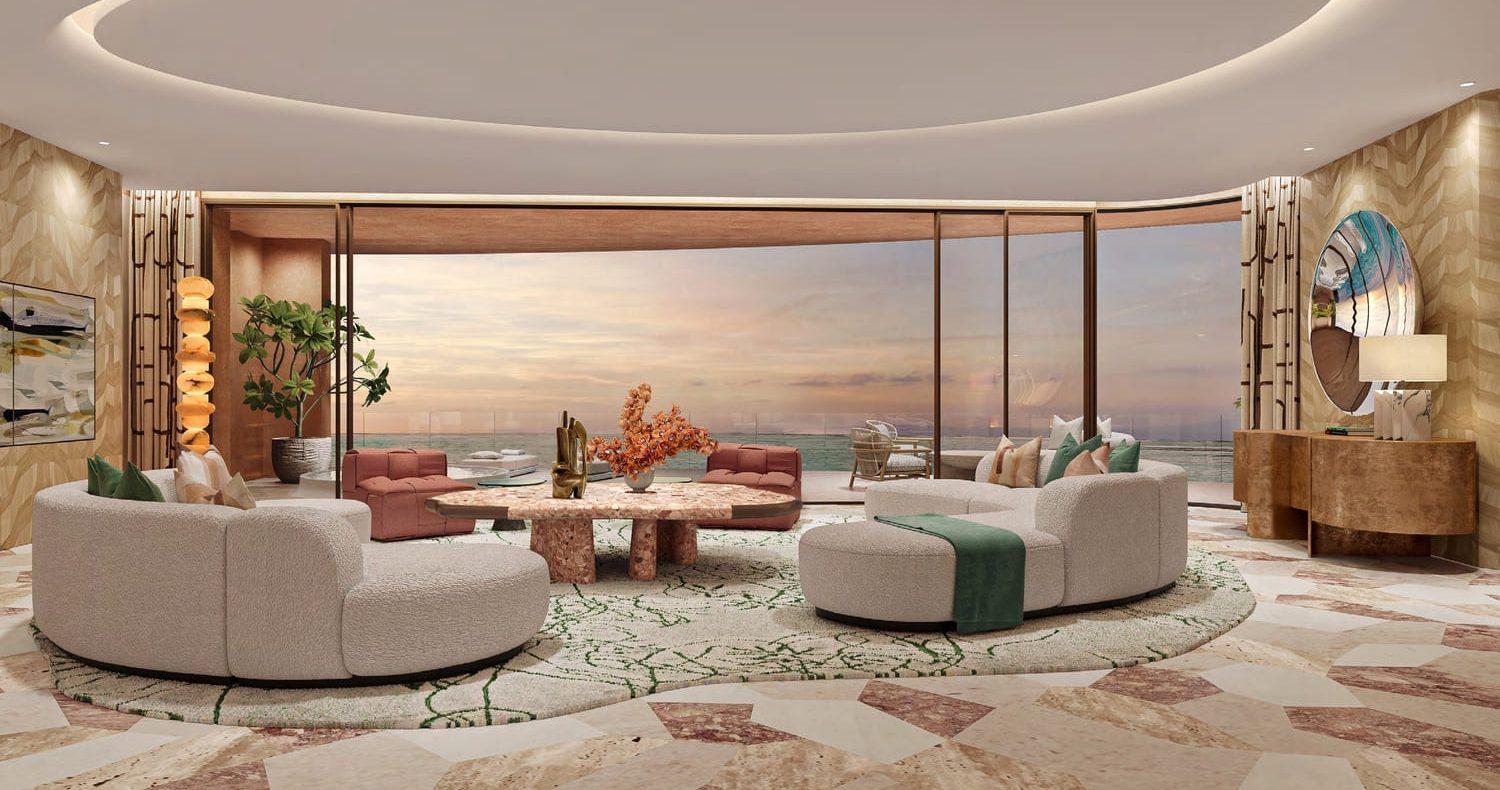 The architectural brilliance creates its distinctive character by forming a design directly out of the land instead of the characteristic tall Dubai skyscrapers. The architectural composition combines modern lines with untouched nature as two hills preserve this masterpiece between them. The residences integrate flawlessly into their environment through facades that resemble moving like sand dunes and restless ocean waves. Rich valleys contain walking paths that display magnificent seaside outlooks as well as concealed oceanfront areas. Every material selected including stones, glass and wood serves as an essential part in creating perfect structural unity with both architecture and its environment.