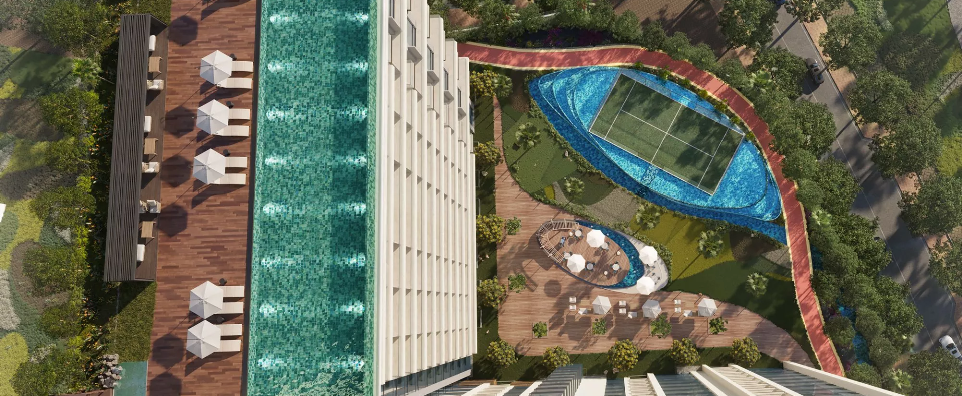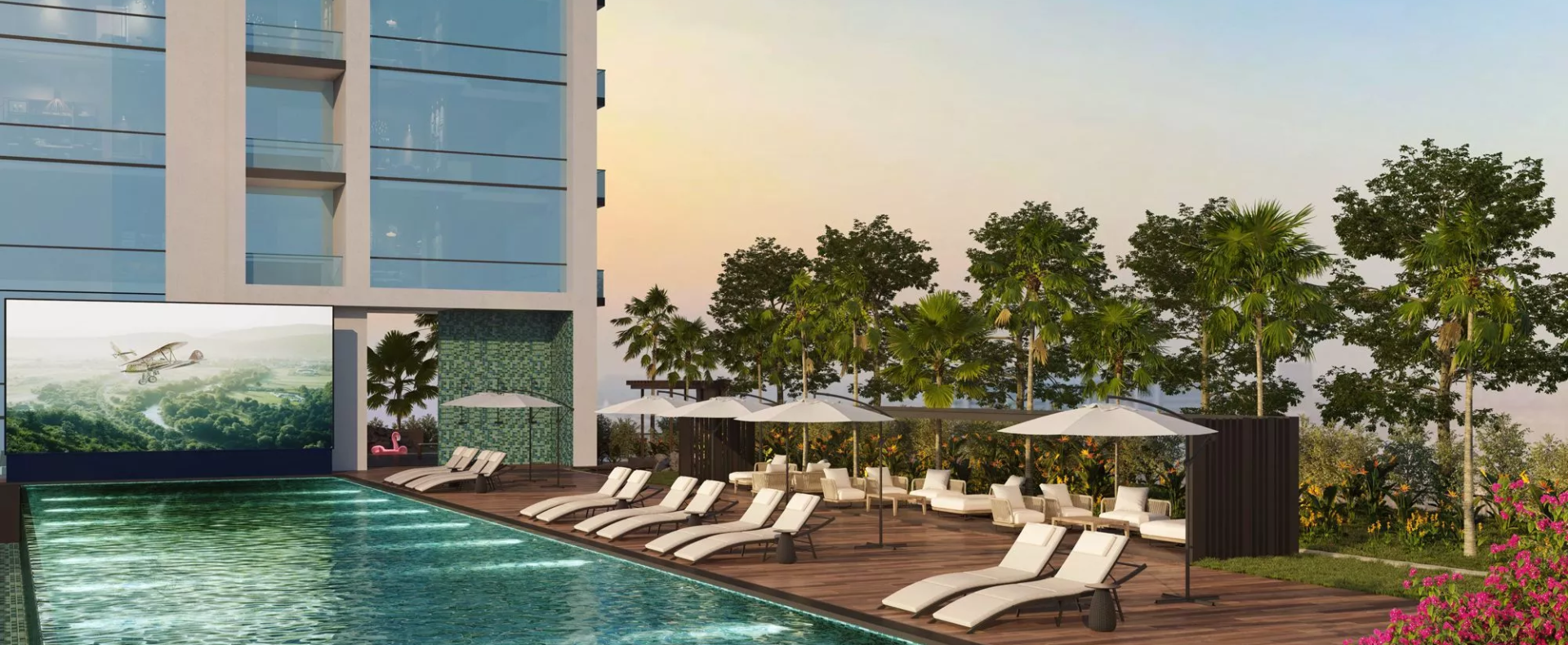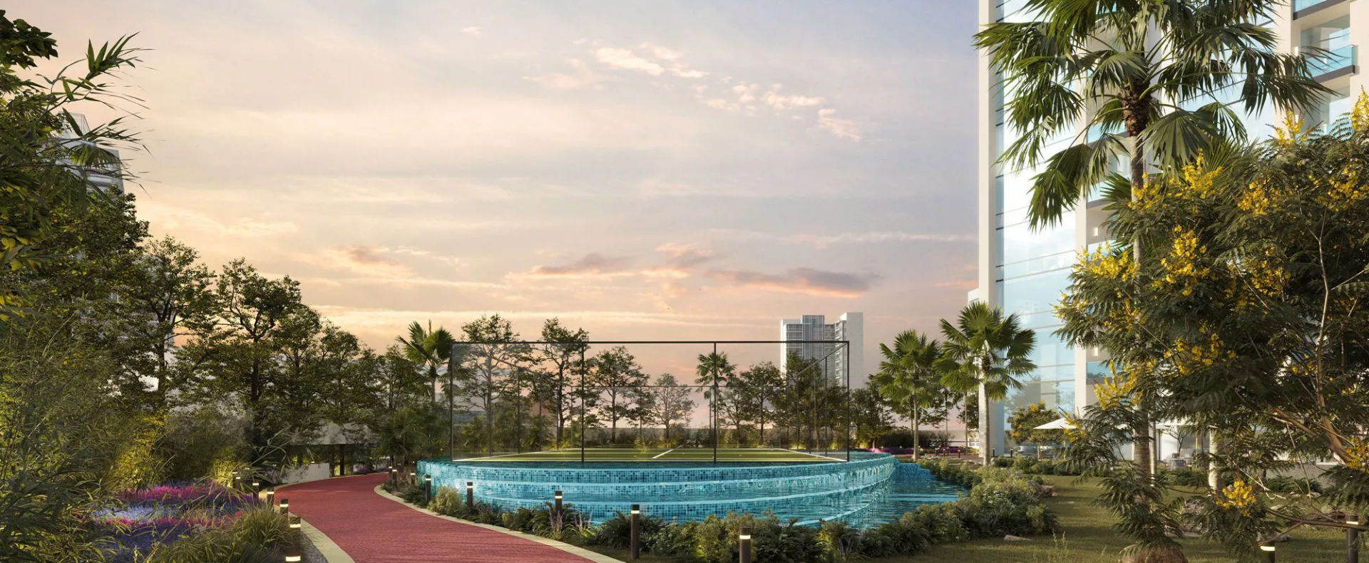 The high-rise complex will be equipped with a wide array of ultimate recreational facilities. These include virtual golf, rainforest dining, padel on the water, outdoor and indoor children’s play areas, an observatory lounge, a meditation zone, a landscaped pool deck, a library, a running track, an infinity swimming pool, a bowling alley, billiards, a party hall, a rainforest lounge, and an outdoor cinema, among others.
