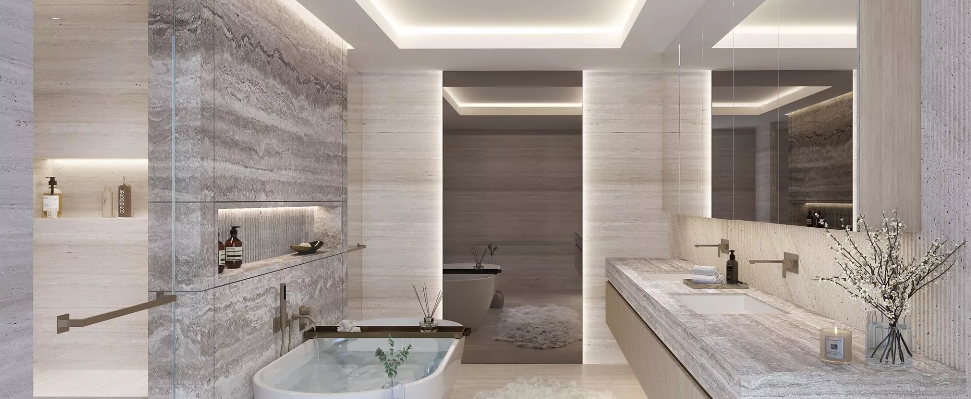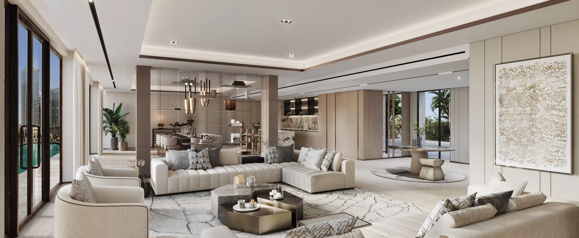 The gorgeous villas feature oversized terraces, an indoor & outdoor TV viewing area, a lounge space, dining spaces with BBQs, a rooftop lounge and terrace, a gym, a study or office, a room for a pool table or piano and more. Select units contain a private swimming pool. These residences are also distinguished by exclusive gardening, travertine & stucco facades, metal & mashrabiya accents and imported European wood flooring.