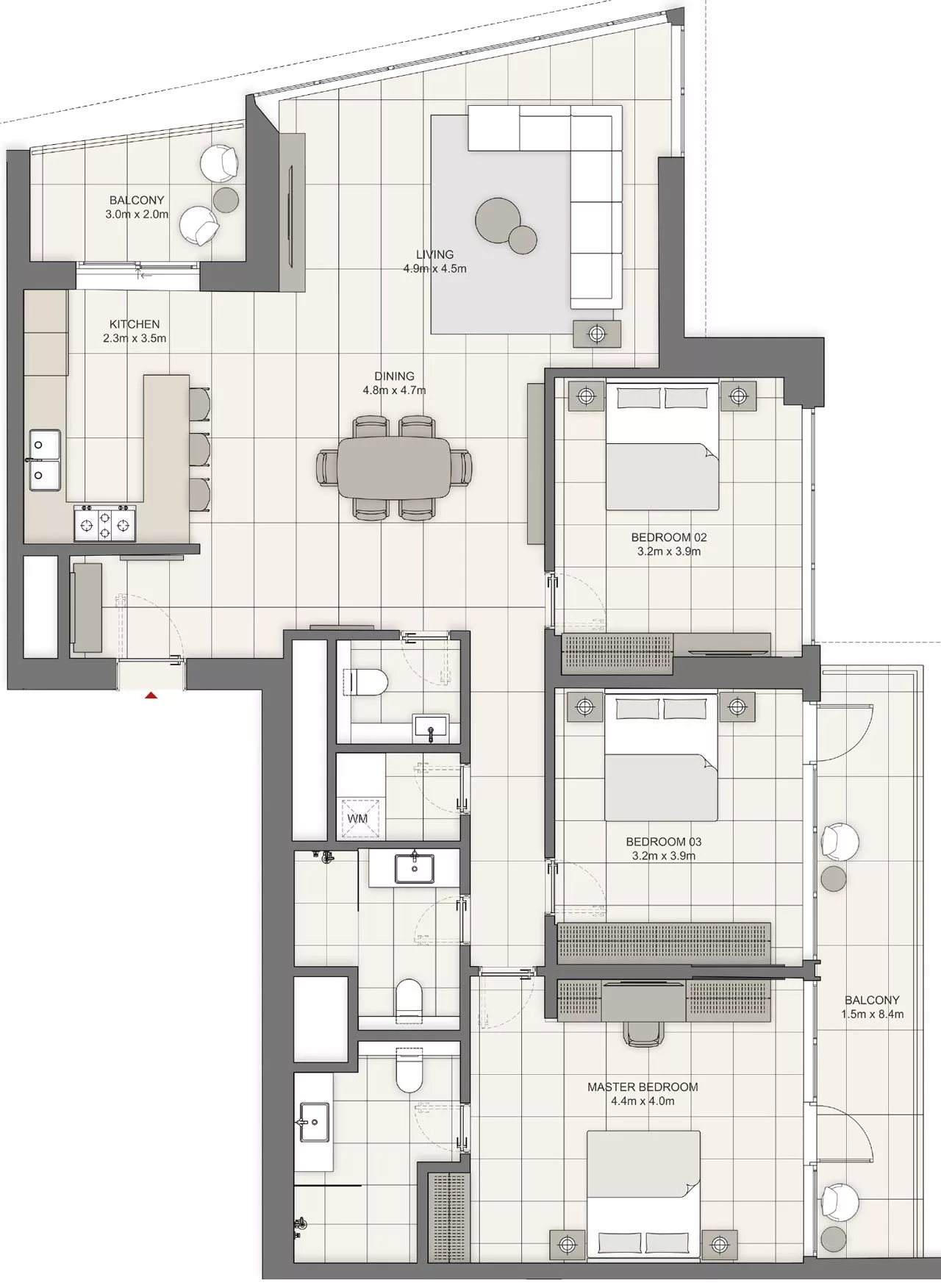 The luxury project offers a selection of exquisite properties, including 1–3 bedroom apartments and two 3-bedroom duplex penthouses. For those seeking more spacious accommodation, there are also signature three 3-bedroom duplexes, three signature waterfront townhouses, and five signature 4-5 bedroom waterfront villas available. Additionally, LIV Waterside features an exclusive property, The Mansion, with a generously-sized living area. Interested buyers have the option to purchase a furniture package.