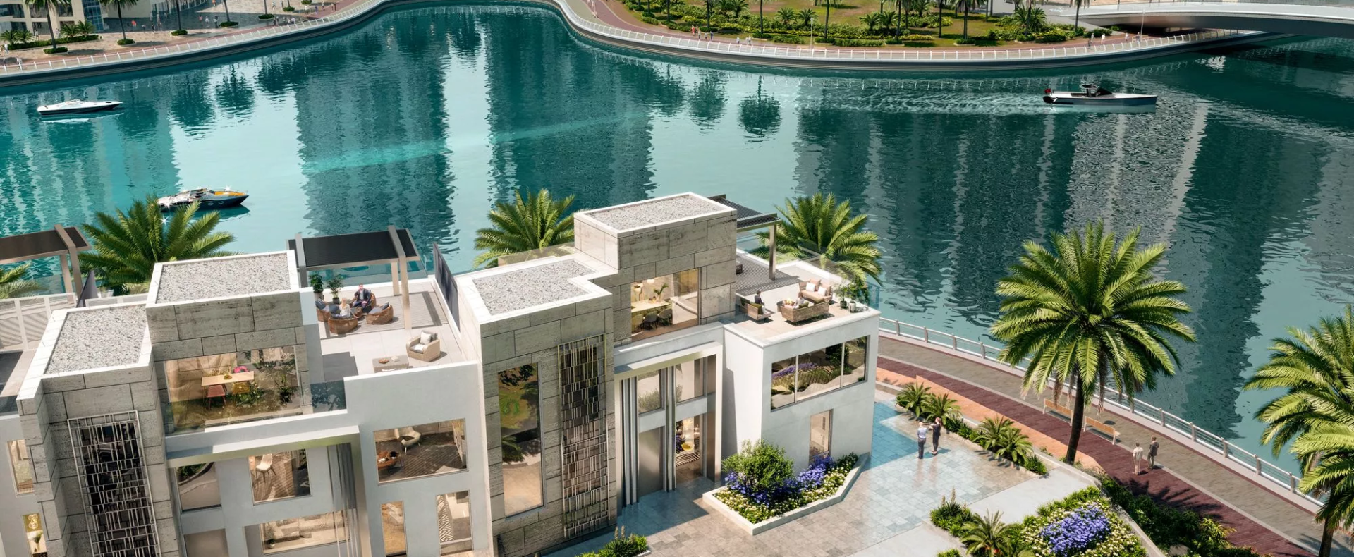 The gorgeous villas feature oversized terraces, an indoor & outdoor TV viewing area, a lounge space, dining spaces with BBQs, a rooftop lounge and terrace, a gym, a study or office, a room for a pool table or piano and more. Select units contain a private swimming pool. These residences are also distinguished by exclusive gardening, travertine & stucco facades, metal & mashrabiya accents and imported European wood flooring.