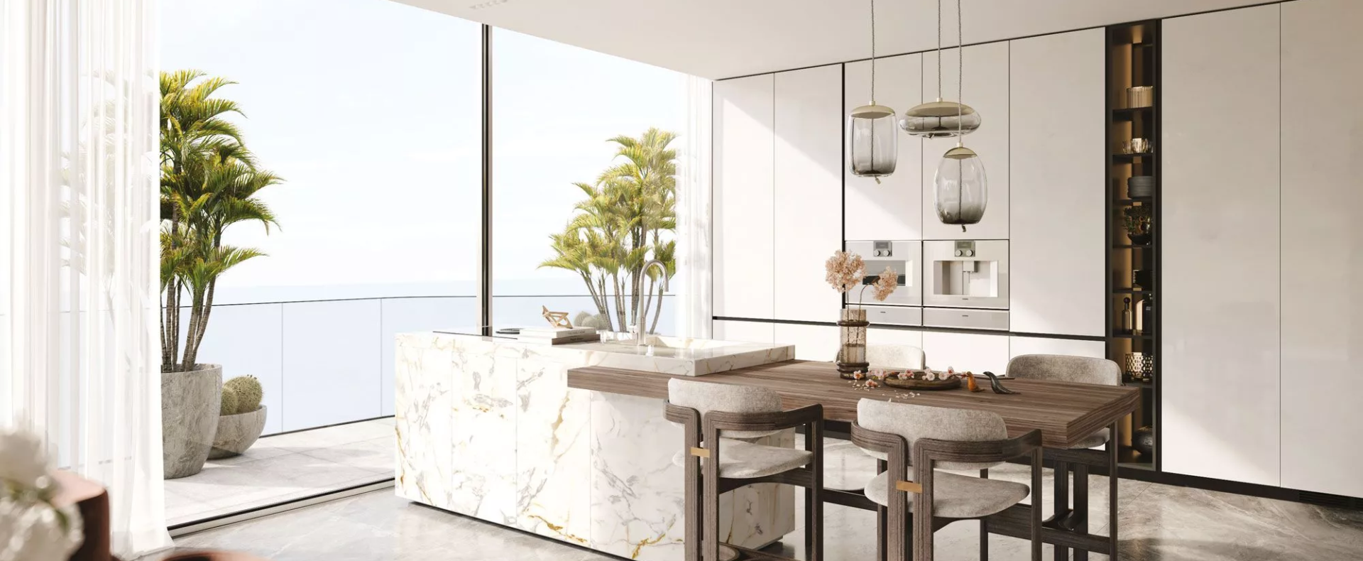 Each apartment in LUCE will be complemented with a maid’s room and one or more balconies for the utmost convenience of homeowners. At the same time, floor-to-ceiling windows will allow an abundance of the natural light into the living spaces and will allow residents to make the most of the incredible views. Additionally, owners of the penthouse and the duplex apartment will be able to take advantage of a private swimming pool and a pool jacuzzi, which will add to the resort-like atmosphere. The design of these gorgeous properties will feature fine natural materials, white earthy hues and soft lines.
