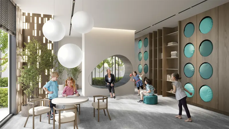 Beyond its stunning architectural design, the development boasts an array of amenities curated to enhance every aspect of residents’ lives. Step into the lobby, where 24/7 concierge service awaits, providing a warm welcome to residents and their guests. Ignite your child’s imagination in the vibrant kids’ playroom, where laughter echoes and friendships blossom amidst a world of interactive games and whimsical adventures.