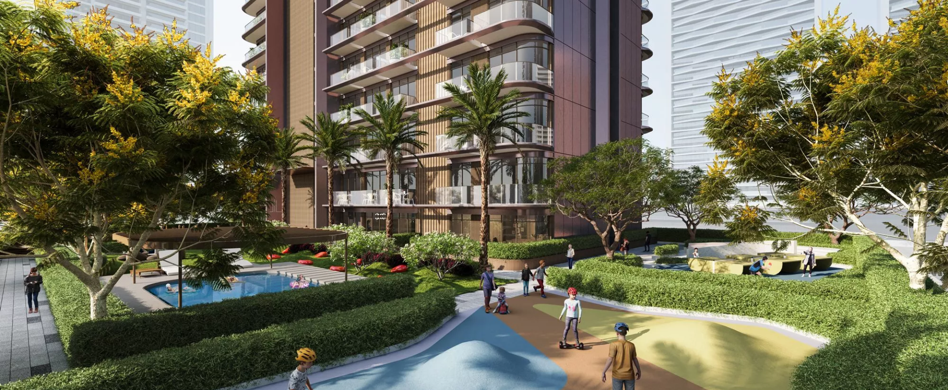 Residents will relish a wide array of amenities, from a fully equipped gym to a rooftop infinity pool, a kids’ playground, and a club room with a billiard table. Moreover, the development prioritizes safety with 24/7 surveillance and even features an electric vehicle recharge station at service.