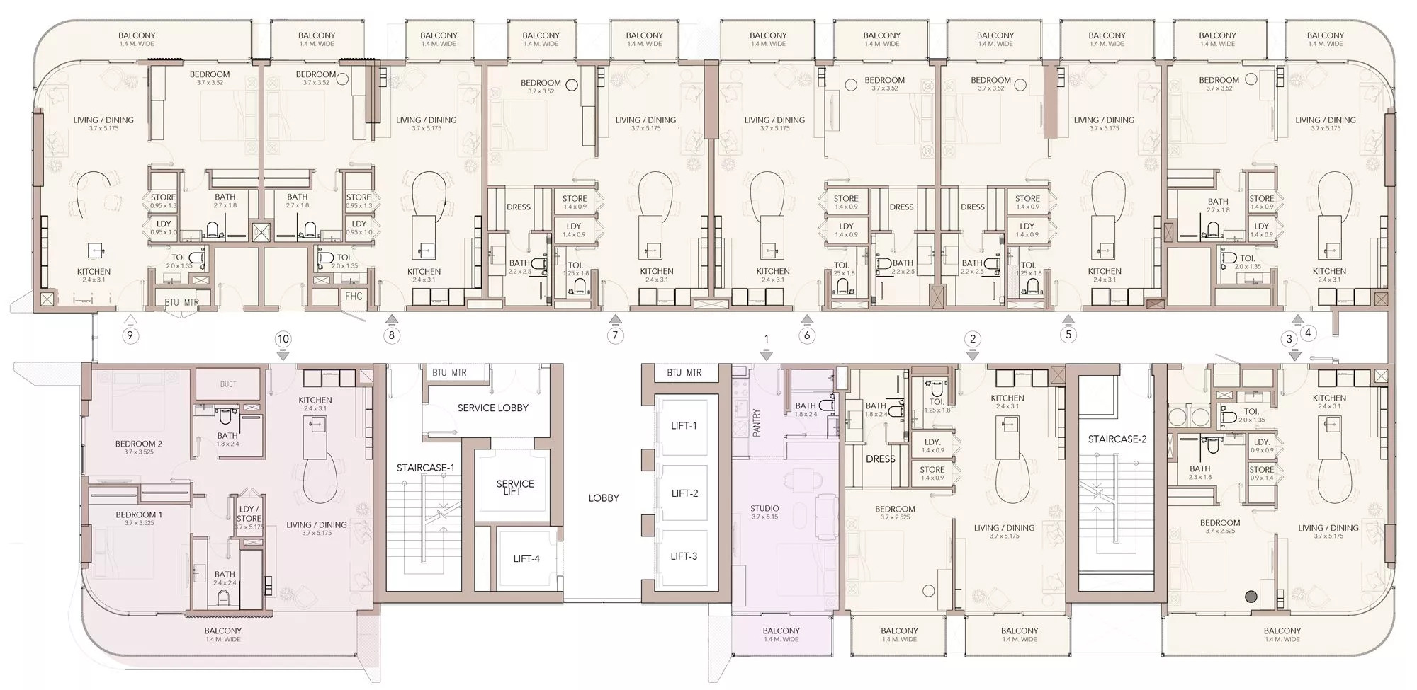 - Studio - 2 Bedrooms