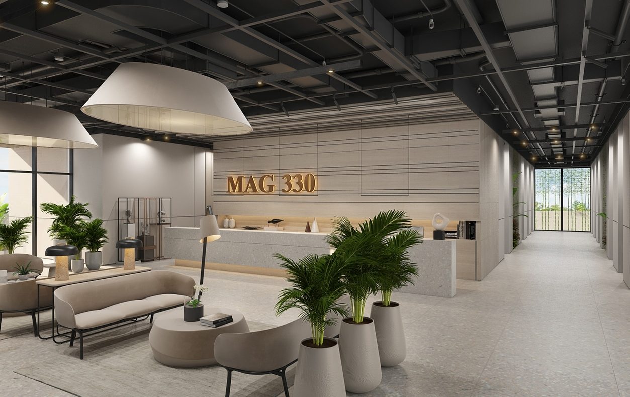 The architecture of the building reflects practicality in its sincerest, most beautiful form. With its distinctive L-shape main structure the project supports high-class living standards. MAG 330 was designed for maximum comfort and style with impeccable interiors, and a host of amenities; including swimming pool and its very own health club. The spacious one, two, and three- bedroom apartments offer high-end living standards complemented with the finest finishes.