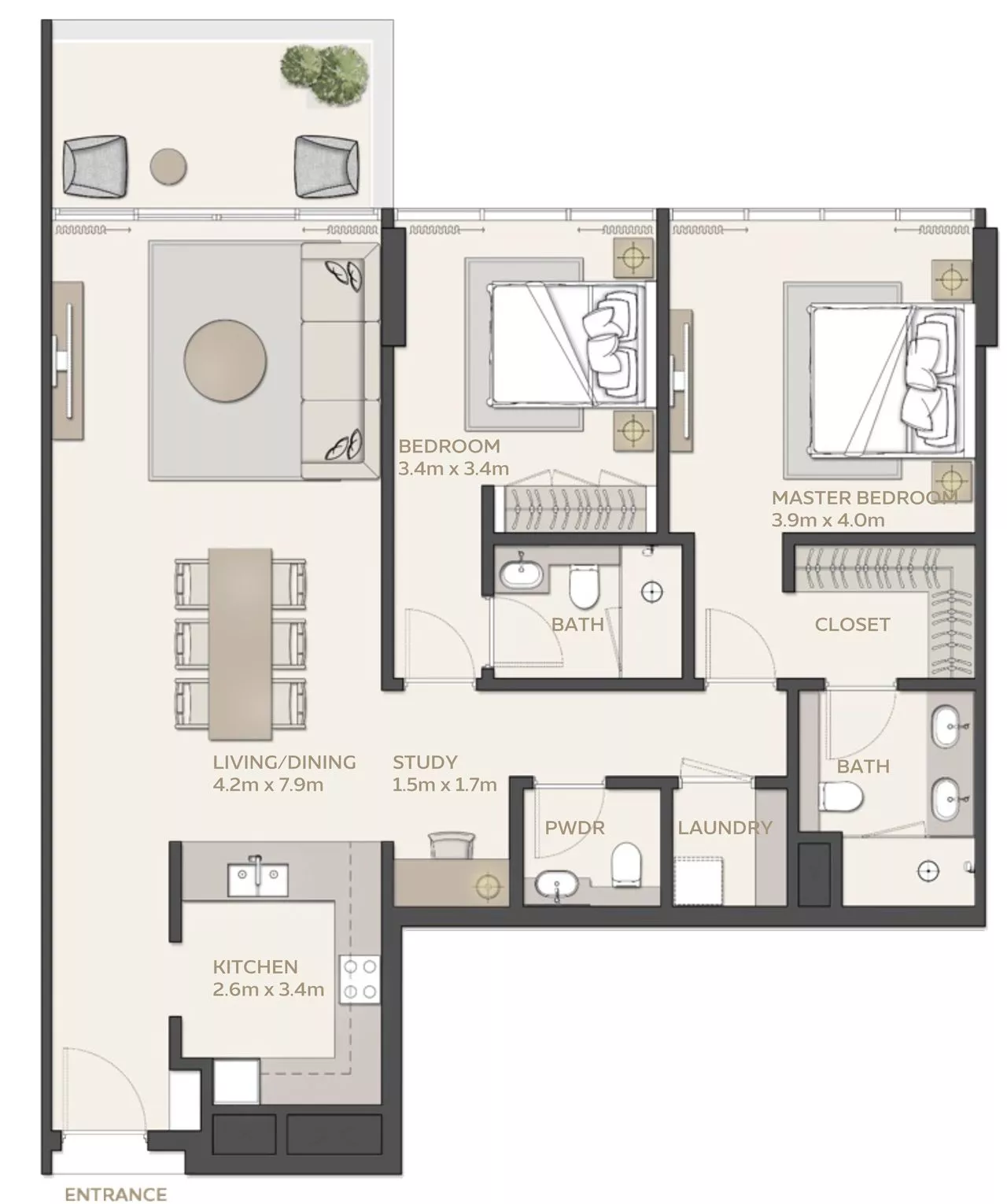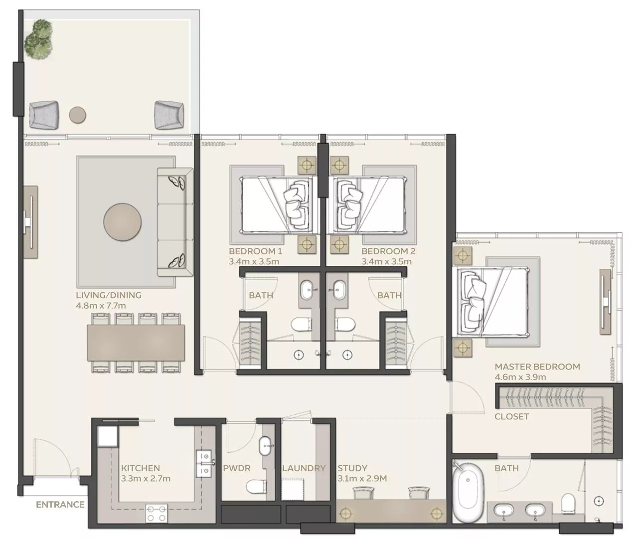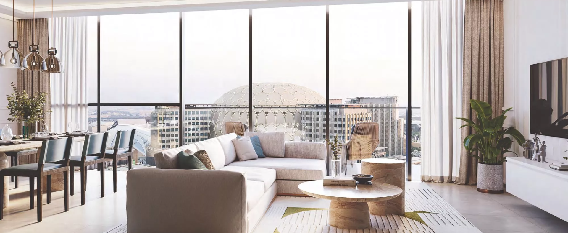 The larger-than-average apartments will boast floor-to-ceiling windows and spacious balconies, which will overlook Al Wasl Plaza, Jubilee Park and the Women’s Pavilion. At the same time, the townhouses will be complemented with private gardens, which will make your living environment even more enjoyable. As well as this, the layouts also include a laundry room, a powder room, a study, a closet, a storage room and a maid’s room.