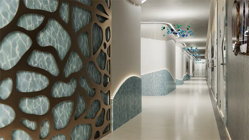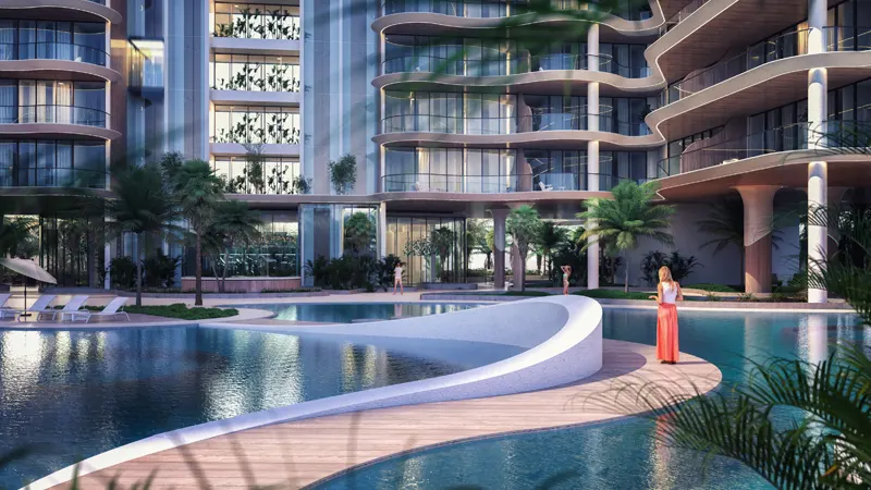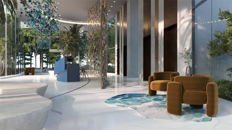Inspired by the graceful movement of the majestic Stingray, the building’s profile embodies elegance and fluidity. Its distinctive shape harmonizes with the surrounding landscape, creating a seamless integration of modern comforts with natural elements. Each apartment boasts spacious interiors, open-floor plan design and large windows, inviting ample natural light and stunning views of the azure waters.