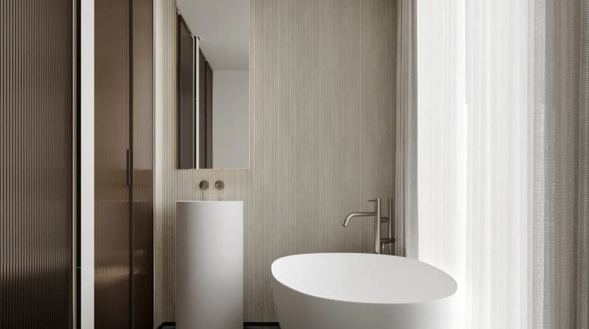 Homes at Marea feature open-plan European-inspired kitchens equipped with premium appliances and high-end finishes, making them both functional and visually refined. Bespoke interior layouts emphasize clean lines and purposeful design, complemented by spa-inspired bathrooms and carefully selected materials throughout. Residences come with considered furnishing elements that enhance the atmosphere of sophistication and support a seamless, ready-to-enjoy living experience.