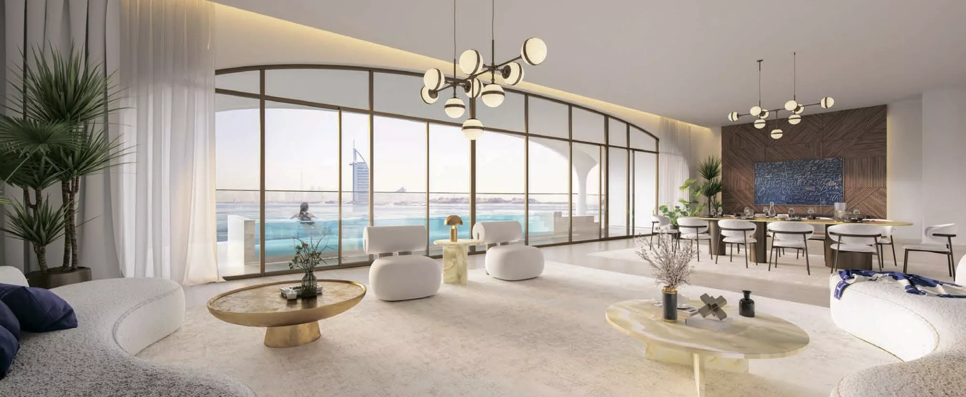 Each dual aspect property in Ocean House will boast a stunning view of the Burj Al Arab and the Arabian Gulf at the front, and the rest of Palm Jumeirah at the back.