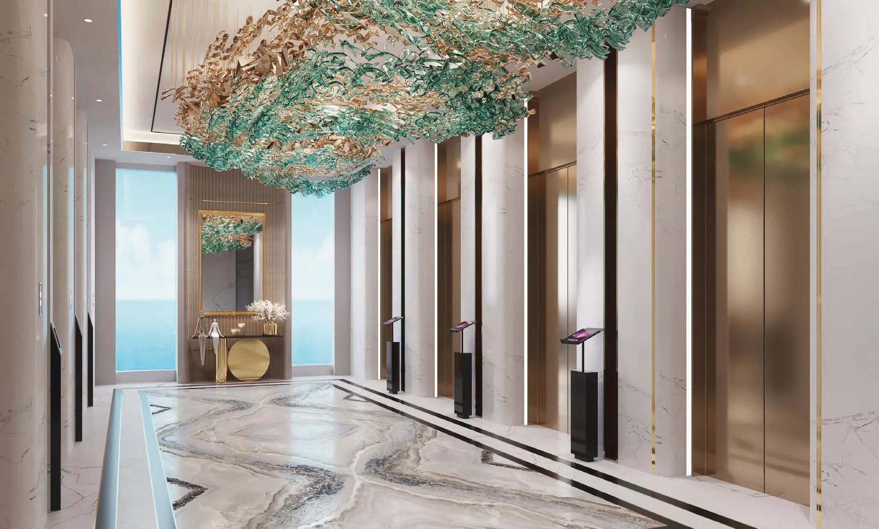 The first phase of Oceanz features 2 towers, each with 53 storeys, 44 of which are residential. There is an array of exquisite fully-furnished studios, presidential suites and 1–3 bedroom apartments. On top of that, there is a limited collection of luxury Oceanic Villas available with TLC furniture. Most of the properties will have private swimming pools.