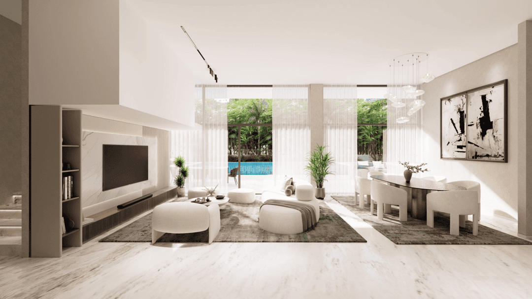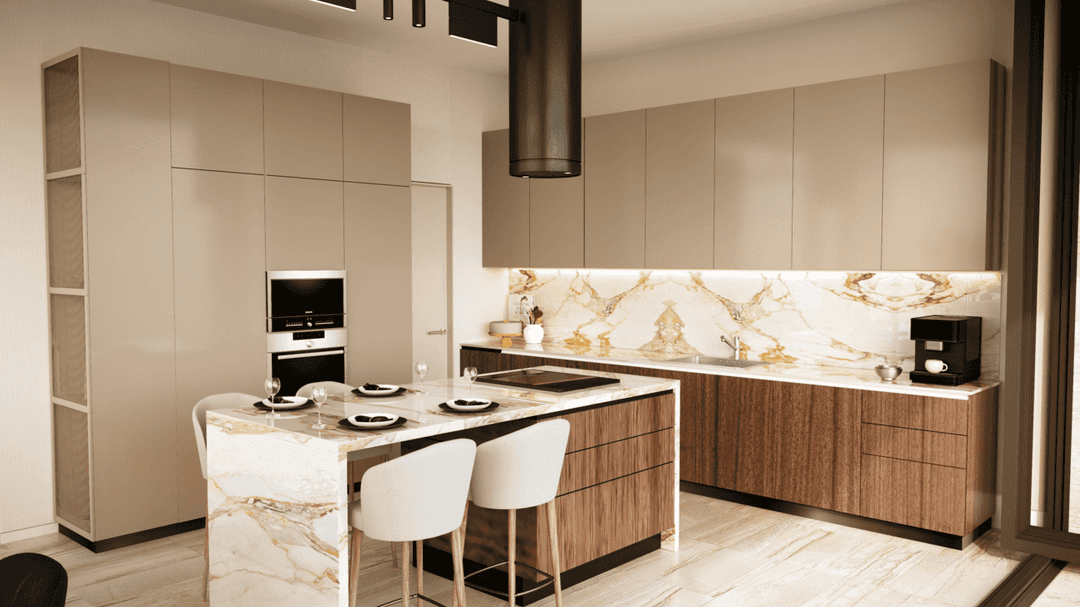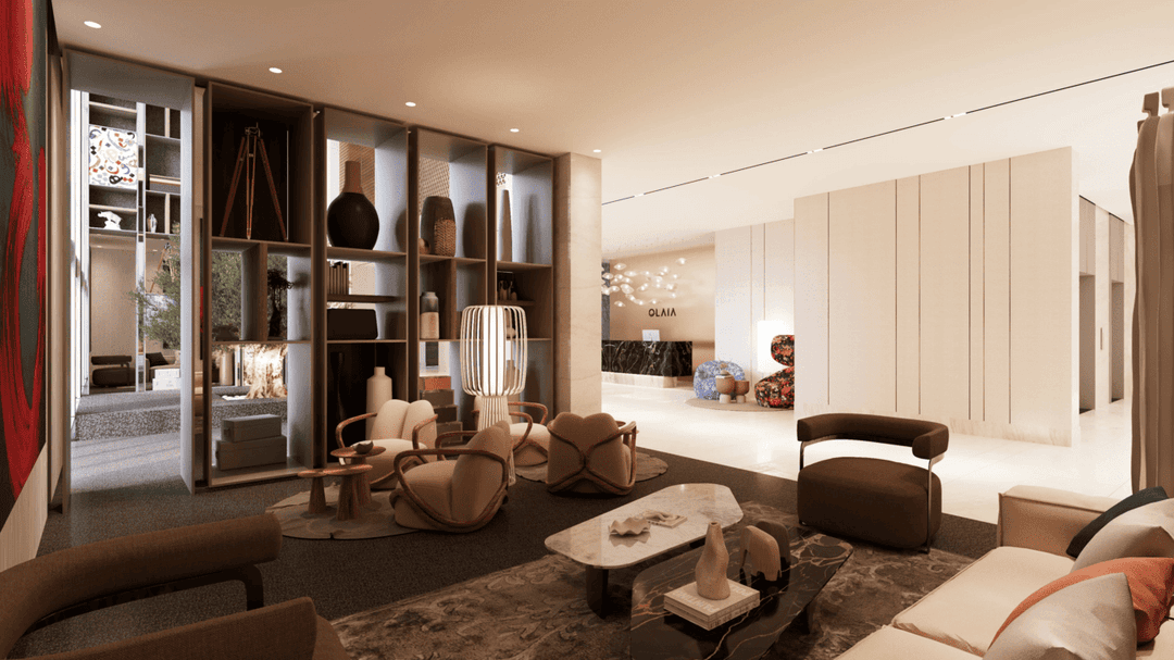 Architecturally, Olaia Residences on Palm Jumeirah stands out for its futuristic yet harmonious design, fully integrated into the island’s natural and urban landscape. The interiors of the apartments at Olaia Residences are designed using marble, natural textures and soft colour palettes.