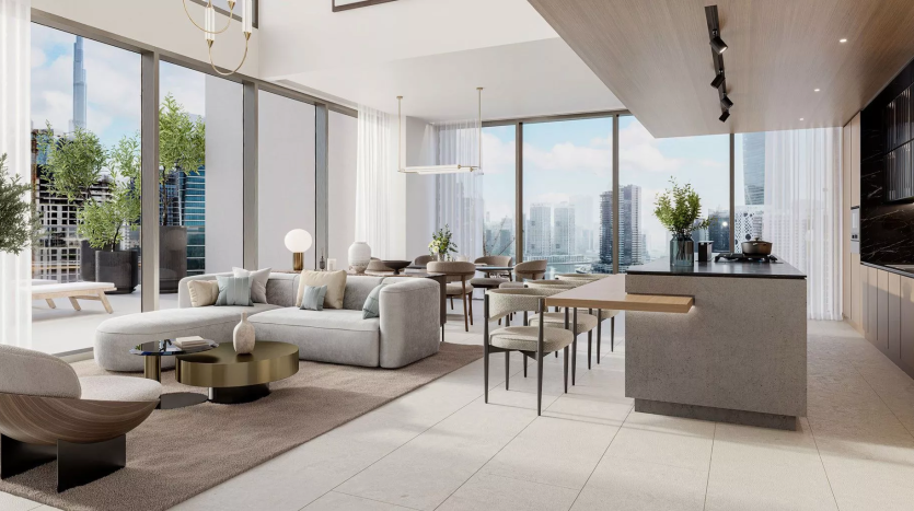 One River Point is a premium 45-storey residential development by Ellington Properties in the ever popular area of Business Bay. Standing tall alongside the Dubai Water Canal, the complex offers a collection of designer studios and 1-3 bedroom apartments. Those who opt for more luxury and space, can choose from 3-4-bedroom duplexes with private swimming pools and 3-4-bedroom penthouses.