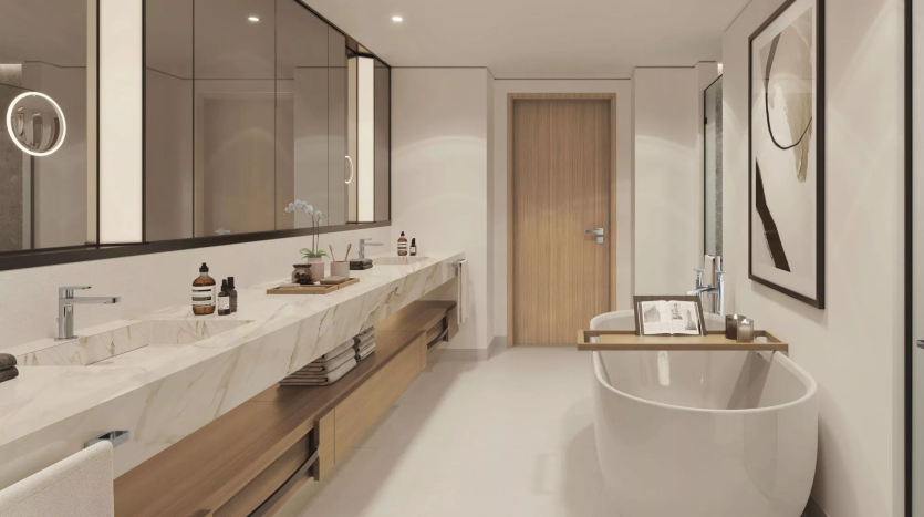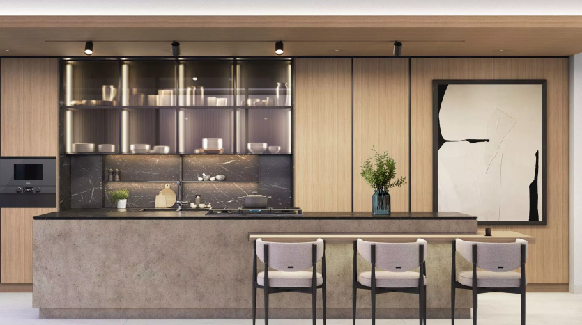 The residences measure from 487 sq. ft to 5,847 sq. ft, including the balconies. The layouts may include a laundry room, a powder room and a maid’s room. The duplexes and penthouses come with a study, a store room and a private terrace, whilst select units are additionally complemented with a swimming pool. What’s more, the 3-bedroom units, penthouses and duplexes will have an integrated drop-in sink with a vegetable and fruit rinser and a pop-up downdraft hood slider in the kitchens.