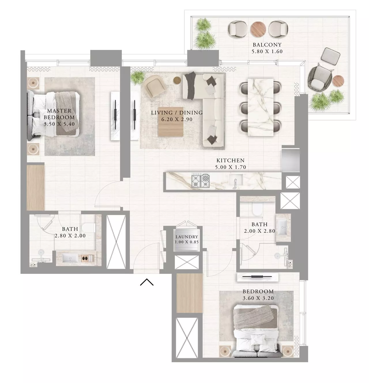 Prospective property buyers will be keen to learn that the layouts will include a laundry room, a walk-in wardrobe and 1 or more balconies with a stunning waterfront view. Additionally, the townhouses and 3-bedroom apartments will come with a maid’s room for the utmost convenience of homeowners. The real estate sizes in Palace Residences – North range from 639 sq. ft to 1,924 sq. ft.