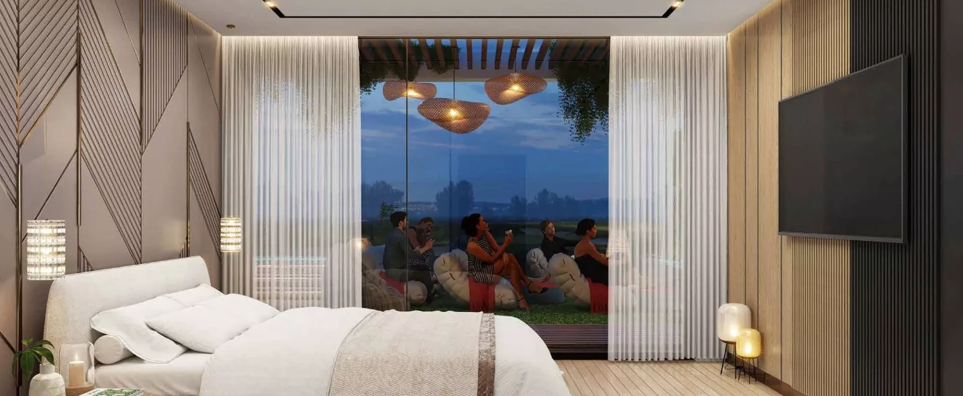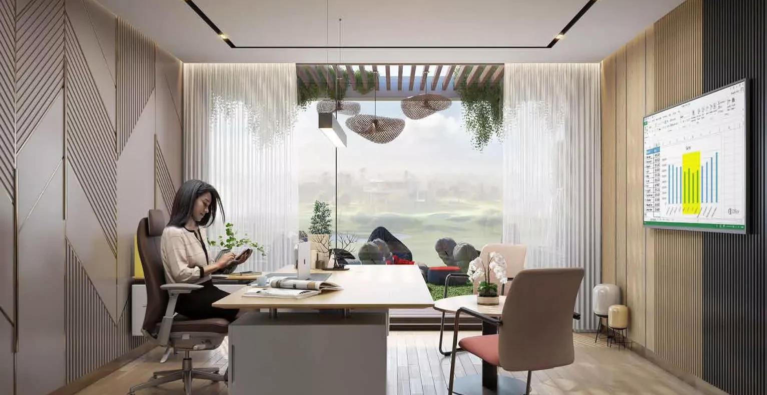 Park Greens is an upscale residential development by DAMAC Properties in DAMAC Hills 2. Nestled amongst lush leafy landscapes, the project features a collection of spacious twin villas. These have 4 dedicated bedrooms and 1 room to customise as you please; it can serve as an office, a game room or a personal library, for instance.