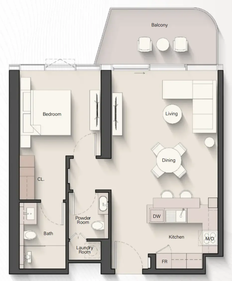 Each residence at Portside Square is crafted for life in perfect flow. The interiors draw inspiration from the meeting of sea and shore, balancing texture and tone to create spaces of calm sophistication. Natural materials, layered finishes, and gentle color palettes form an atmosphere of modern refinement. Expansive windows frame panoramic views of the Arabian Gulf, the marina, and Downtown Dubai, while open layouts enhance light and connection, allowing every home to feel both tranquil and alive.