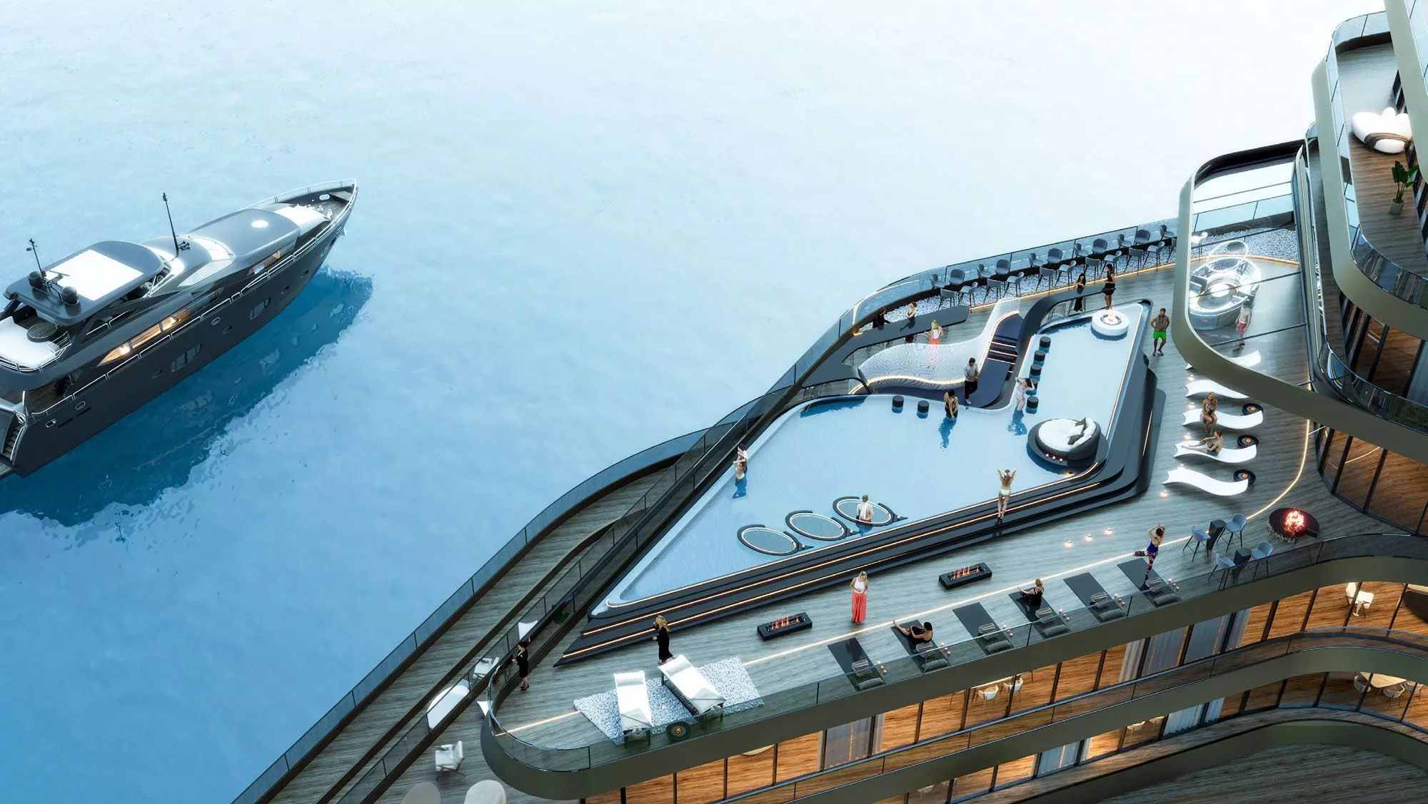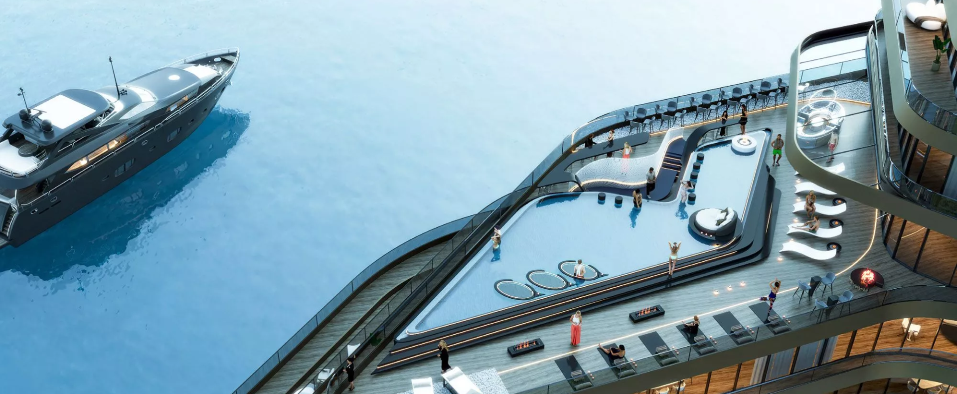 The living areas of the properties range from a cosy 413 sq. ft to a generous 4,623 sq. ft, ensuring ample space for all residents. Moreover, the residences offer breathtaking views of the lagoon and the sea from their balconies and terraces, adding to the overall appeal of the complex. Please note that select units also come with a maid’s room for the utmost convenience of owners.
