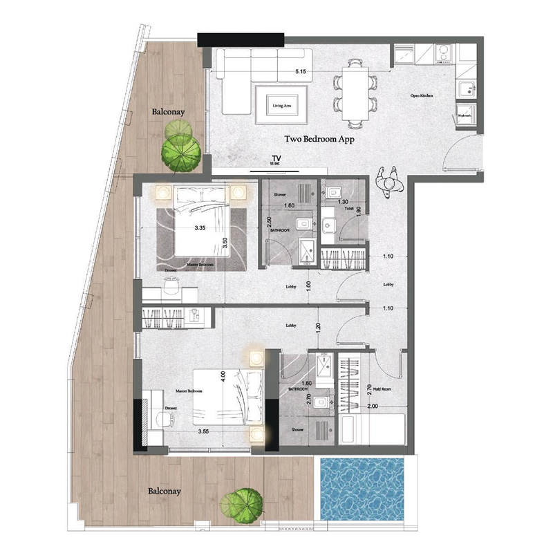 Saray Prime enriches daily living with a variety of amenities, including a rooftop infinity pool with a waterfall, indoor and outdoor gyms, a home cinema, indoor golf, landscaped communal areas, and dedicated children’s play zones. Smart home features add an extra layer of comfort and security, making each residence a tailored space where modern living feels seamless and inspiring.