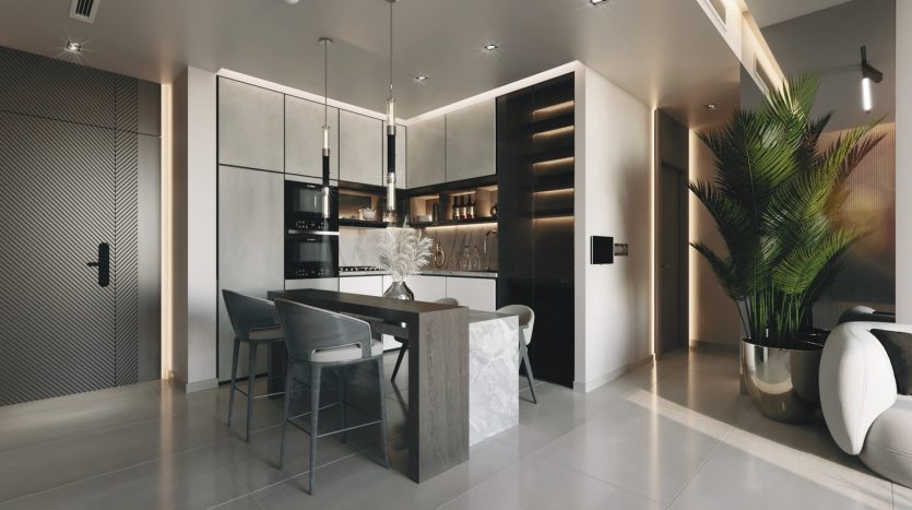 The residence includes 121 units in total, ranging from studios to one- and two-bedroom apartments. Each home is thoughtfully designed to maximize space and natural light, featuring open layouts and high-quality finishes. Kitchens and bathrooms are equipped with premium built-in solutions and elegant fittings, ensuring a blend of functionality and refined aesthetics.