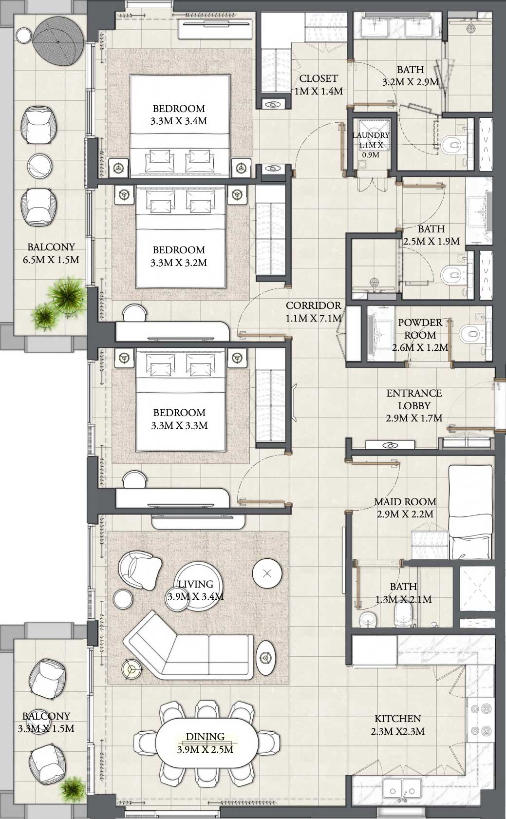 Three Bedroom Floor Plan