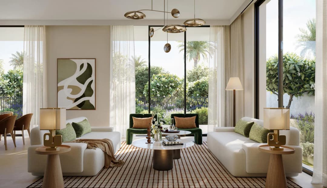 Interiors at Serro reflect a philosophy of soft luxury and understated elegance. The villas feature soft luxury interiors with natural tones and premium finishes, creating calm and harmonious living spaces inspired by nature. The internal design focuses on comfort, light, and spatial flow. The villas are delivered without furniture, and the interior specification emphasizes high-quality finishes with modern materials, in line with the project’s refined residential concept.